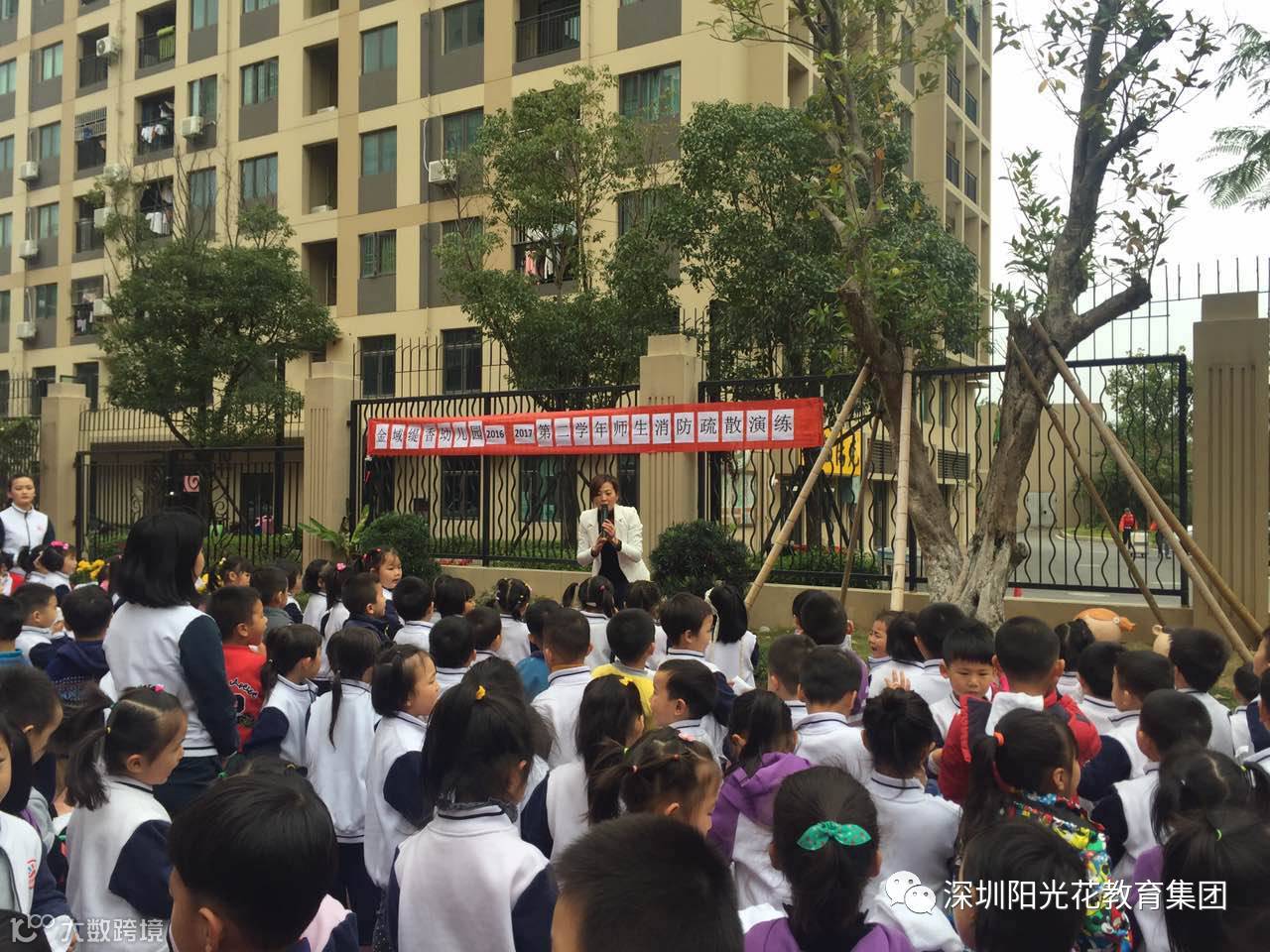 为了进一步加强幼儿园安全工作,增强师生消防安全意识,本着坚持“安全第一,预防为主”的方针和“以人为本”的思想,提高自救防范能力,做到在发生火警火灾时,能临危不乱,有序、迅速地按照消防逃生路线安全疏散,确保生命安全和幼儿园的消防安全,我园于2017年2月23日下午3点开展了一次安全疏散消防演练。一阵急促的警报声拉开了“师生安全疏散演练”活动的帷幕,听到警报声,各班教师迅速带着幼儿弯着腰、猫着步、捂着口鼻沿着指路线前进,有序撤离到幼儿园的安全地带。