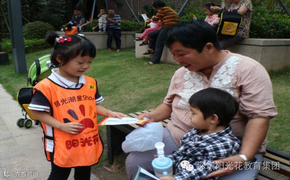 潮宝们在给社区的叔叔阿姨们宣传安全知识。