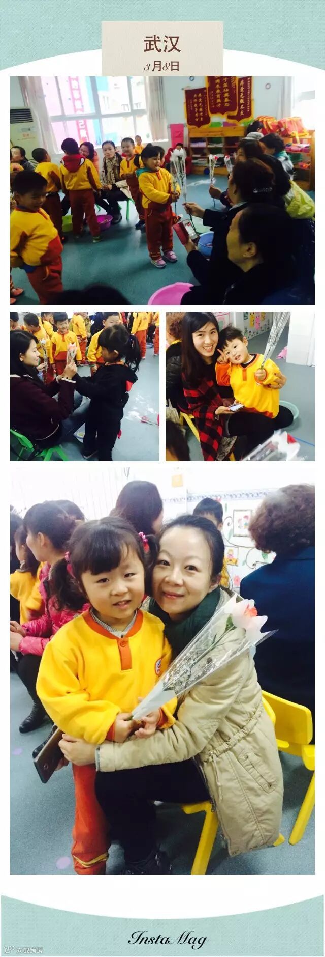 在这春和日丽的日子里,我们迎来了"三八妇女节",为了纪念这个有意义的节日,阳光花深圳总部金色未来幼儿园开展了一系列活动,如上午大大班开展了自己的事情自己做《欢乐草莓园之旅》,活动中小朋友们热情参与,积极投入,取得丰硕的战果,活动后制作视频上传微信获得家长高度肯定。以"感恩妈妈"为主题,妈妈辛苦了进行了《最美的妈妈》照片展,当我们家长朋友入园接宝贝时,给亲爱的妈妈们一个大大的惊喜,宝贝们不仅亲自赠康乃馨,还说出一句句贴心的祝福语并送上拥抱,以表心中的那份感恩,让家长们感动不已,洋溢着幸福的笑脸!趁着节日老师们也怀着一颗感恩的心诉说《妈妈这些事》演讲比赛,回忆是那么的真挚美好,整个空气都萦绕着感动的气息。在这特别的节日里教师们也依次领取到了节日礼物,老师们个个装满幸福的笑脸!感谢阳光花细致入微的问候,祝阳光花家人妈妈们节日快乐,女神们青春永驻!