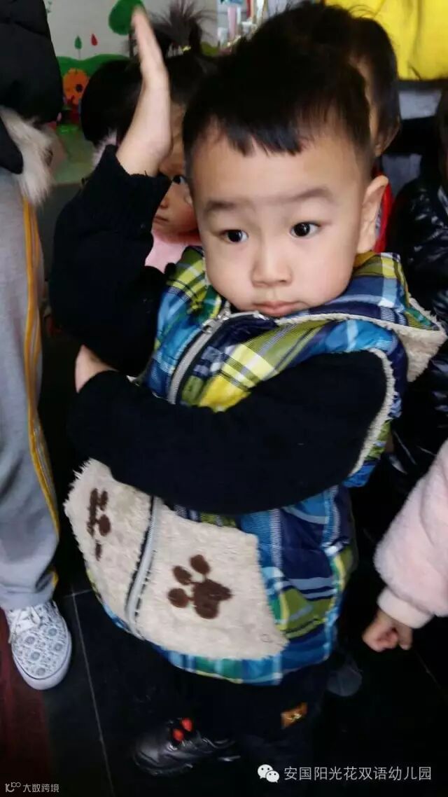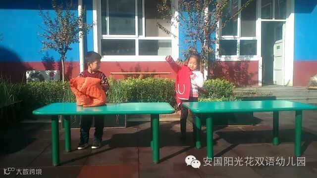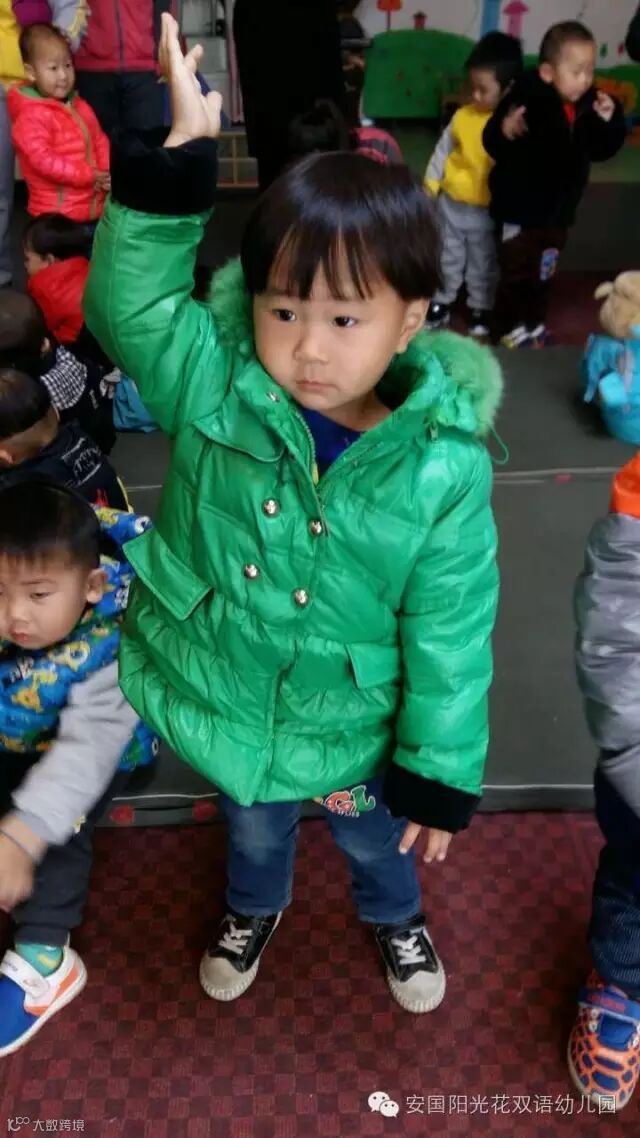 虽然我们很小,但是我们很有集体荣誉感,我们在喊加油,小朋友们你们快点穿,为咱们班争第一。