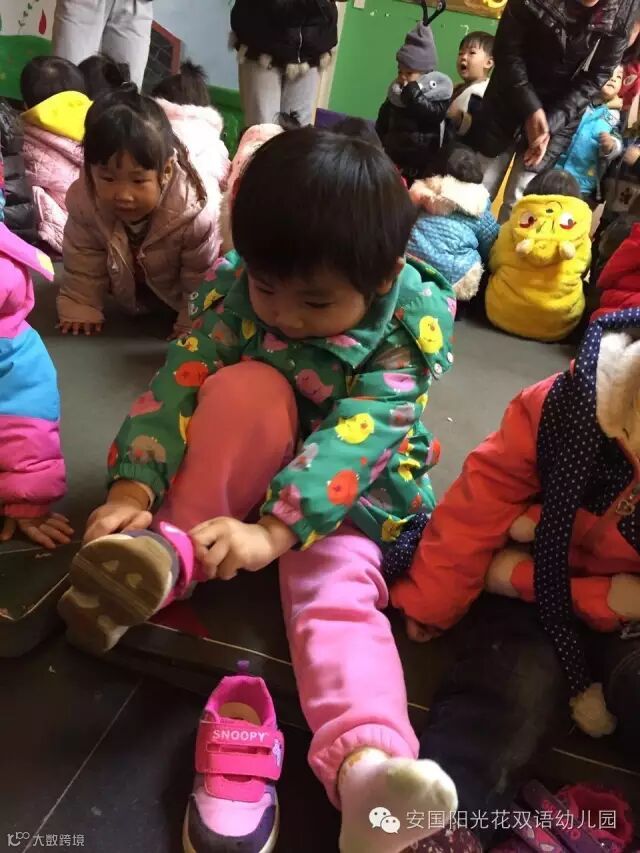 幼儿生活自理能力的形成,有助于培养幼儿的责任感,自信心,以及自己处理问题的能力, 我们在家庭与幼儿园一日活动中,能给孩子一个锻炼的机会,创设一个锻炼的环境,挖掘一个锻炼的空间,那么孩子生活自理能力的提高就能不失所望。这对他们将来的学习,生活肯定是有益的。2016年10月31日上午阳光花幼儿园小班组进行了自理能力——穿鞋子比赛。小班的孩子们来园两个月了,他们各方面的能力都有了明显的进步,让我们来看看他们可爱的模样吧!