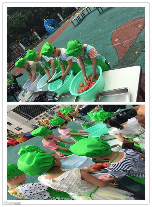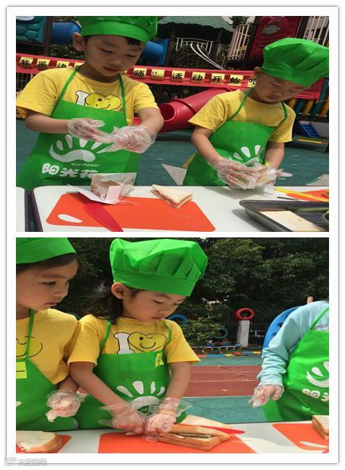 潮童们分组行动:潮童们分为采购组、运货组、洗菜组和切菜组。最后潮童们聚在一起做三明治哟!我们制作的三明治格外香,限量版的,外面买不到的咯!快快来分享吧!