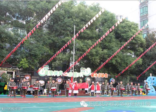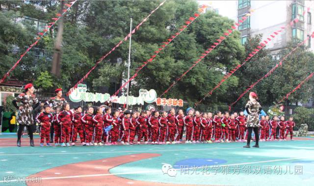 000 阳光花·学雅芳邻双语幼儿园在11月11日、11月12日开展了为期两天三场,以“英姿飒爽 童领天下”为主题的军旅亲子运动会。