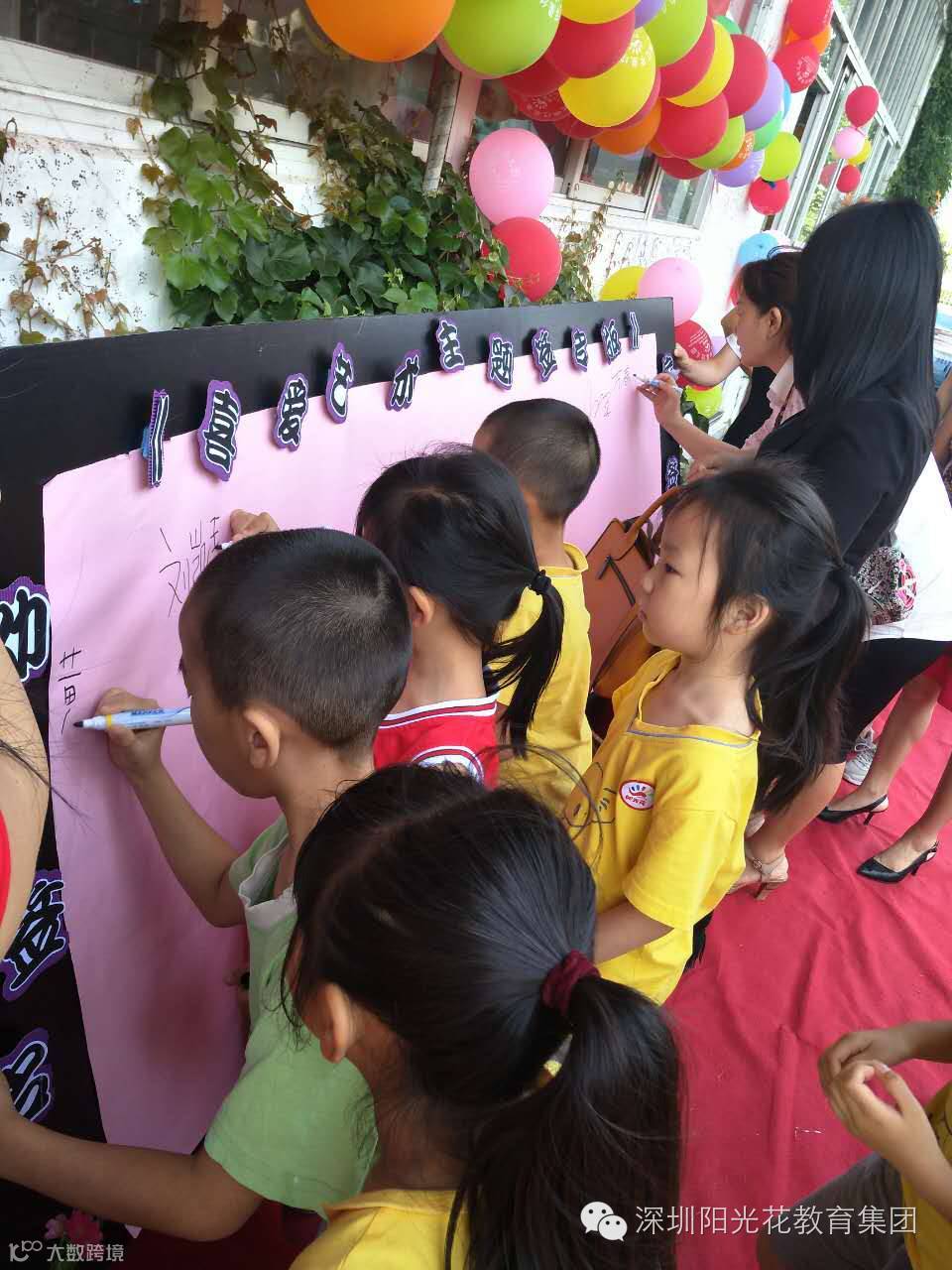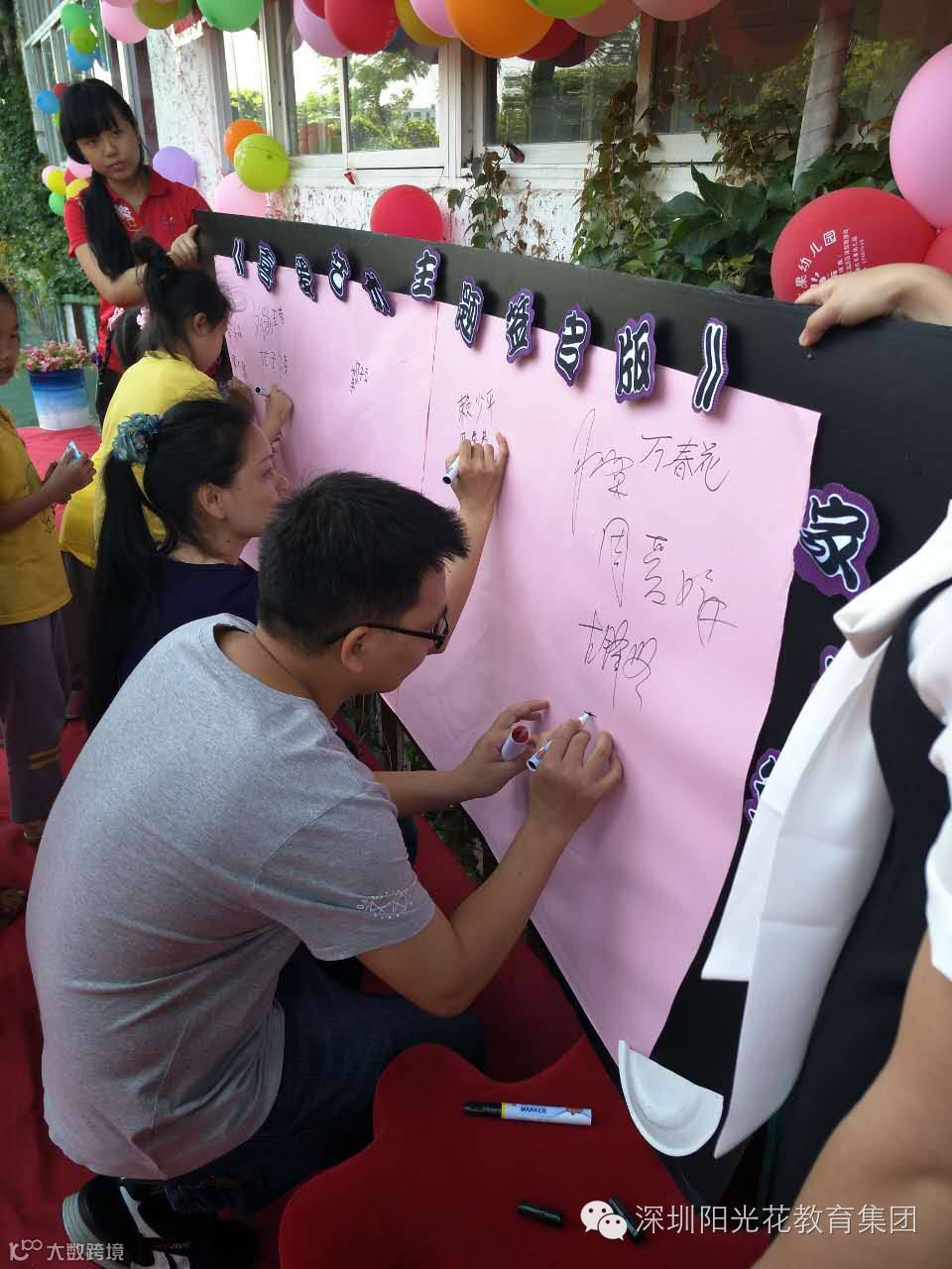 伴随着律动《幸福快乐阳光花》家长代表和幼儿代表进行了艺术节签名仪式
