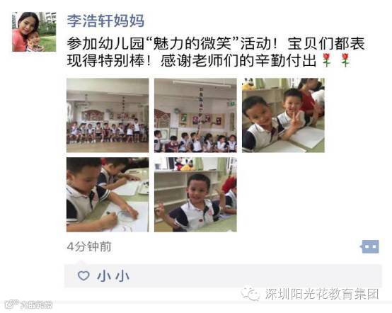 瞧!孩子开心的微笑,让我们心里变得暖暖的、甜甜的,看到孩子一天天长大,学会了关心人,体贴人,而且还会微笑待人,多棒呀!