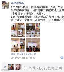 秋天,是收获的季节,是回报的季节,老师们满怀喜悦地迎来了全国第32个教师节,阳光花领航城幼儿园于2016年9月9日上午开展了“祝福您,老师”教师节庆祝活动。