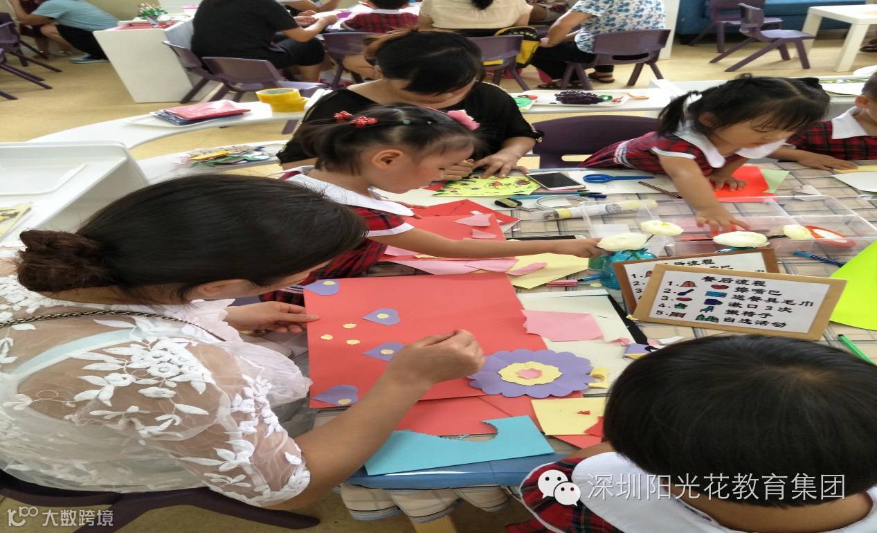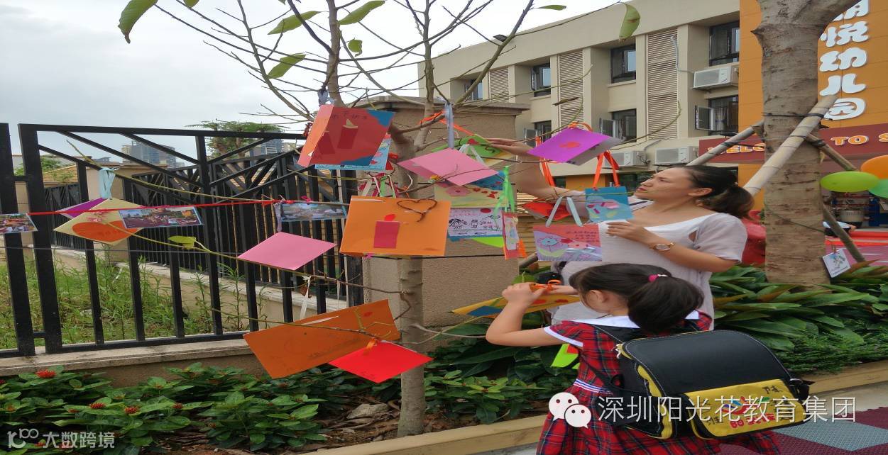 第二环节各班教室:制作教师节贺卡。从活动现场看来心灵手巧的不止只有宝妈们,还有我们的宝爸也是特别能干,制作好的贺卡非常精美,每张贺卡上都写满了家长及宝贝对老师们节日的祝福,最后由孩子跟家长一起把贺卡挂在了我们院子里的愿望树上,整个院子其乐融融充满了欢声笑语。