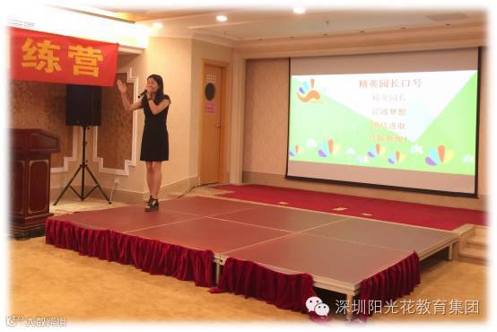林丽清总园长带领所有园长喊出精英园长营的口号:精英园长、超越梦想、团结进取、共铸辉煌!
