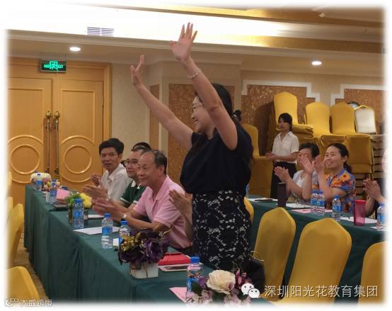 2016年7月22日,阳光花精英园长训练营第二天,由深圳阳光花教育集团叶华总监主持,精英园长们还是饱含激情地参加培训,从热身、喊口号到与讲师互动,园长们都非常积极地参与其中。