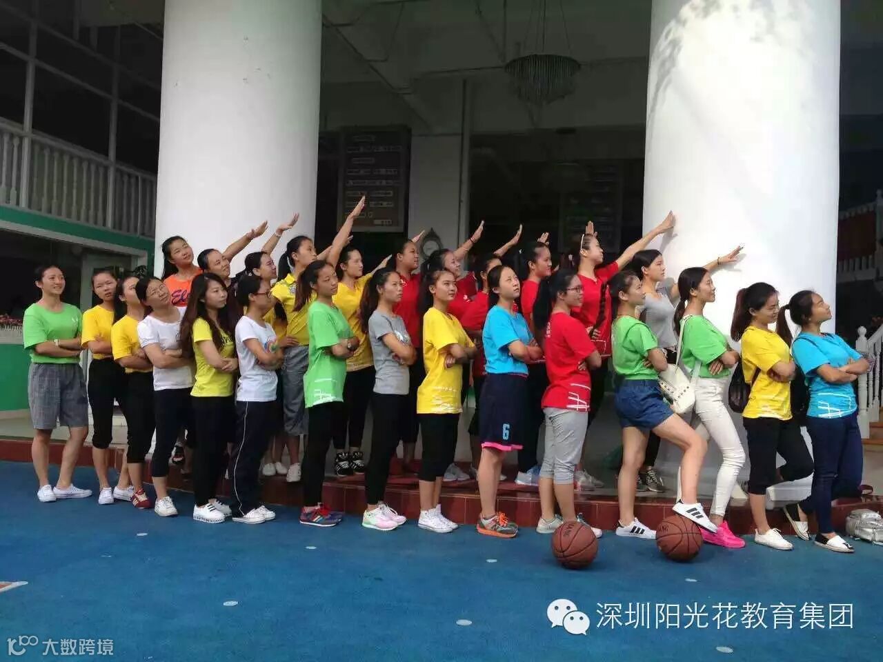 此次篮球培训理论与实践相结合,课程内容丰富、形式多样,分三个阶段:第一天是篮球基本技能、游戏、玩法训练,老师们激情飞扬。第二天是实践PPT说课训练与考核。老师们从胆怯到自信,飞速成长感谢遇见了更优秀的自己。第三天团队创编花样篮球操考核,老师们把阳光花人精诚合作精神发挥的淋漓尽致。每个团队在舞台上尽情欢乐的展示篮球与自己融合在一起的魅力!