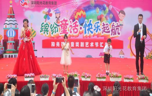 爱,在童话中荡漾,情,在童话中升华。真,在童话中再现,美,在童话中分享。孩子,在童话中长大。孩子,在阳光花怒放!在一个个精彩的童话剧中;在欢快的旋律中,阳光花领航城幼儿园“首届童话戏剧艺术节闭幕式”圆满结束!让我们再次以热烈的掌声向小朋友们致以节日的祝贺!谢谢大家!让我们明年再相聚!