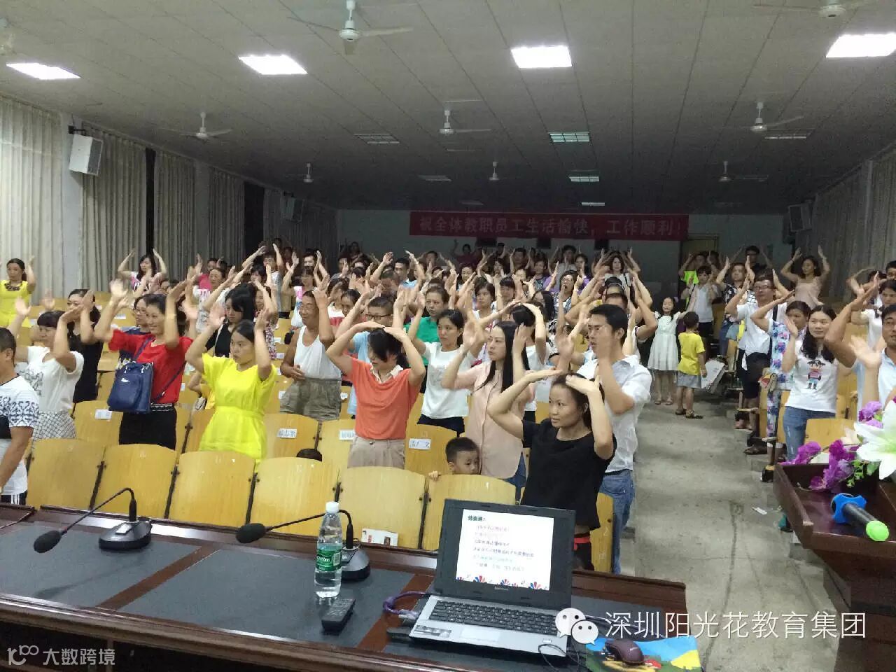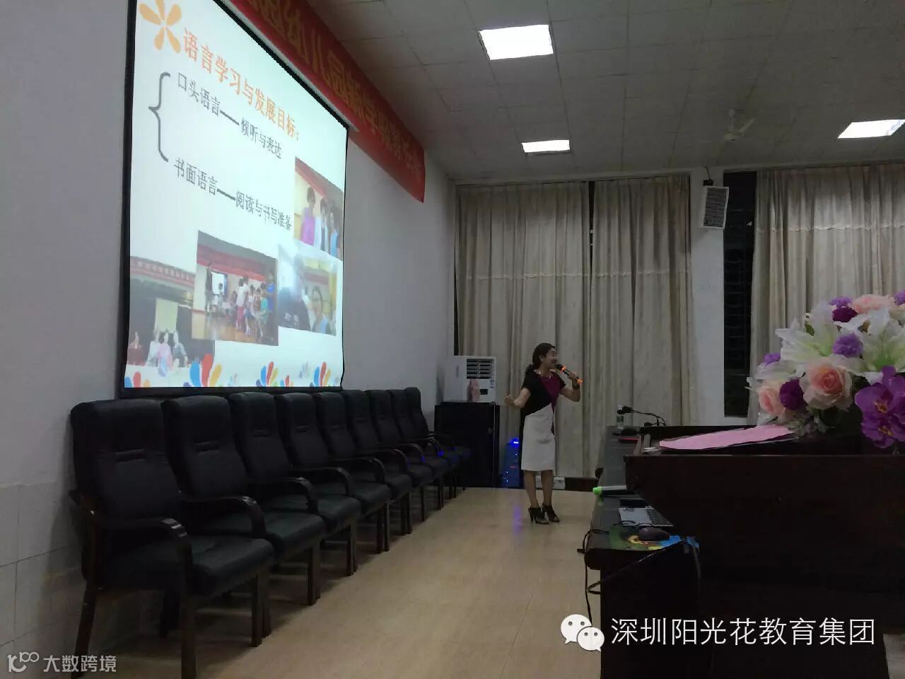 童年----多么美好的时光,看到这个词,我们一定会想到欢乐、嬉戏、阳光等等,一个人生中可以肆意任性,纯真调皮的时段,幼儿园---多么美好的地方,游戏、同伴、老师充满了欢声笑语。然而、当童年碰上了作业单,当幼儿园遇见了a o e .这2个美好的词汇就好像不再那么美好。深圳阳光花湖南分部江洲花园幼儿园在9月7日的学期初家长会上,王英老师的讲座《让我们的童年洒满阳光》透彻的剖析着3-6岁儿童到底应该学什么,怎么学。国际化的教育理念,真实有趣而富有说服力的教育视频都在敲打着在场的每一个家长和老师。教育是一个永恒的课题,每个父母都不想让自己的孩子输在起跑线,接轨国际教育,接受正确理念。还给孩子们一个洒满阳光的童年。让这个美好的时段赋予它真实的意义。