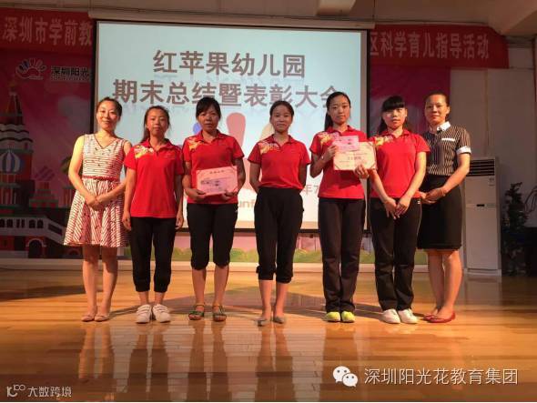 7月8日晚上,我们红苹果幼儿园全体教职工相聚在这里隆重召开2015-2016学年学期期末总结表彰大会。