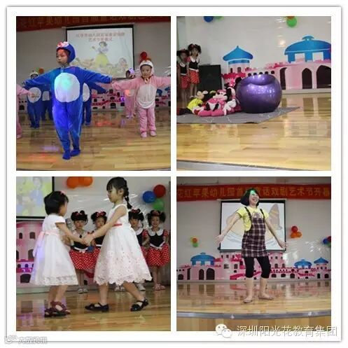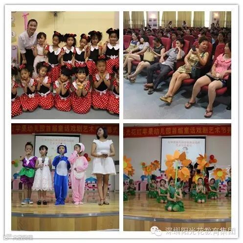 童话教育是爱的教育,童话教育是美的教育,希望每一个孩子在阳光花红苹果幼儿园都能实现自己的童话梦想。让红苹果每一位孩子发展成为自信大胆、有气质、有内涵的未来国家栋梁。本园于2015年5月15日隆重举行了首届儿童戏剧艺术节活动,本次活动通过园长致辞、幼儿代表致辞、开幕式园本童话剧展示、大型亲子童话律动等等系列活动,充分向家长宣扬5—6月的主题活动,让家长参与幼儿童话王国,体验童话给我们带来的快乐。