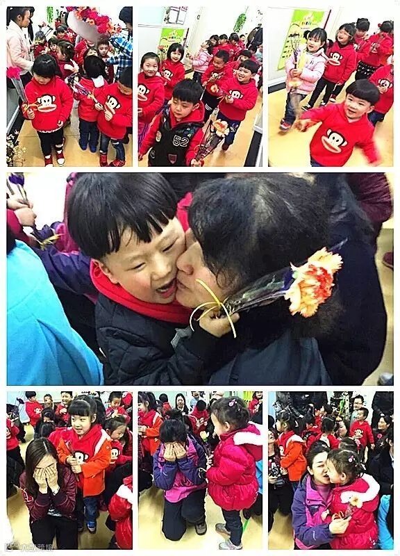 孩子们用美妙的童声载歌载舞,表演着《我的好妈妈》、《只要妈妈露笑脸》,送出最温馨真挚的祝福,孩子们依偎在家长温暖的怀抱里,和家人亲密地一吻……虽然室外飘着雨,可是每个教室里都满溢着最幸福的温存!