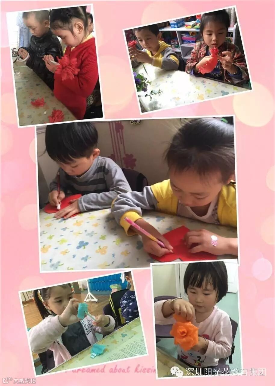 伴着温暖和煦的春风,我们迎来了一年一度的“三八妇女节”,为了让孩子们学会体贴、关爱妈妈,增进亲子间的情感交流,金色阳光幼儿园的全体宝贝们一起制作漂亮的花朵和充满爱的节日卡片!