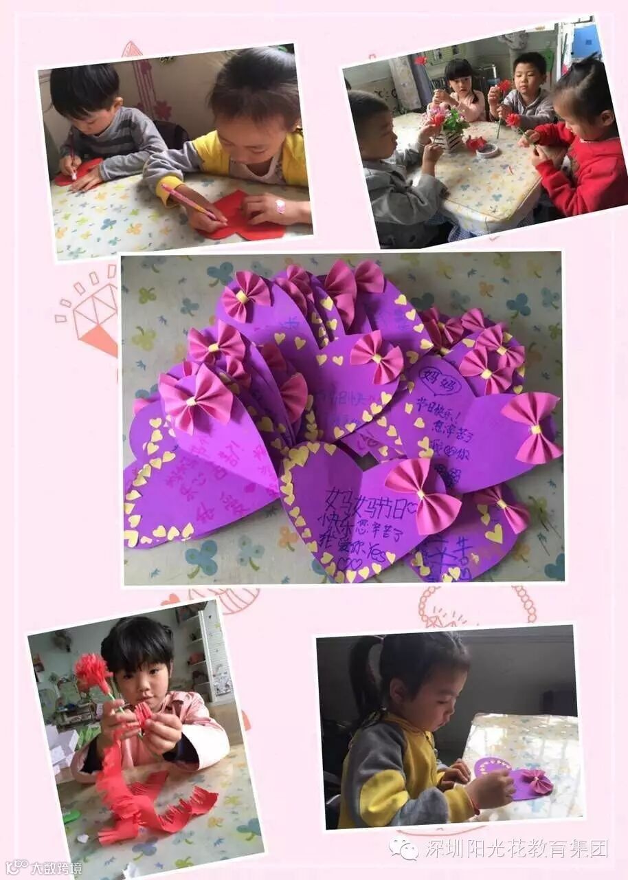 暖暖的爱在小小的巧手下传递。孩子们用实际行动向家长们证明了他们的成长与进步,此次活动既丰富了幼儿的动手能力,更多的是增添了孩子与妈妈亲密无间的爱之情感。给美丽的妈妈们送上节日里最真挚的祝福!同时,祝福阳光花家人们节日快乐,青春常在!