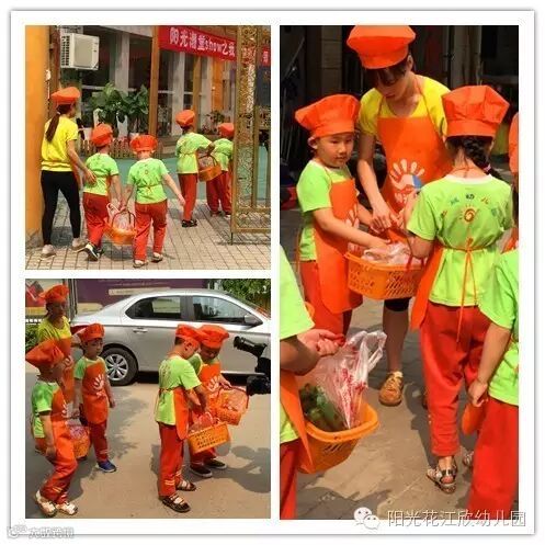 搬运组的孩子们将食材运回了幼儿园