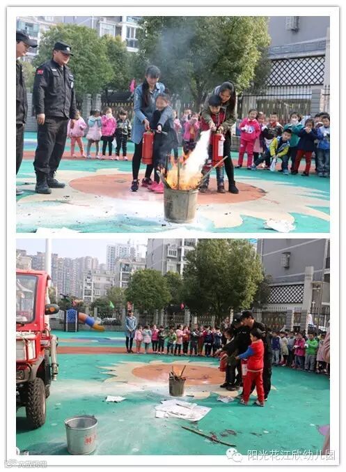 幼儿的安全防范一直是江欣幼儿园工作的重点,为进一步加强消防安全工作,保护幼儿生命,维护幼儿和教职员工的安全,提高自防自救能力,遏制特大火灾等群死群伤事故的发生,2016年3月4日上午,江欣幼儿园联合社区开展了消防演习知识培训活动。