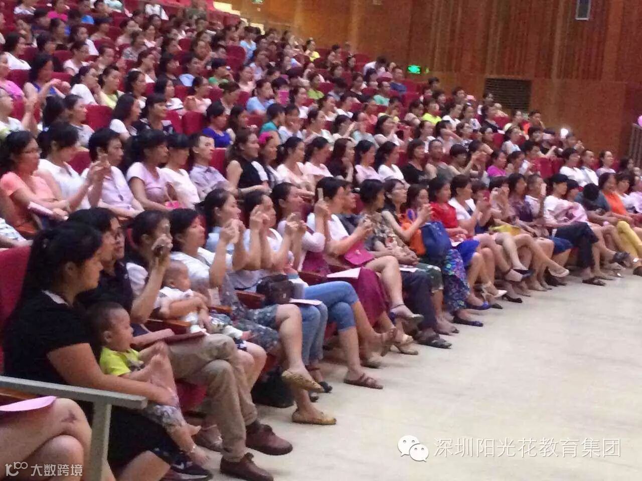 深圳阳光花总部红太阳幼儿园于2015-09-15日下午在光明新区文化馆隆重举行了新学期家长会,王英校董亲领做家教报告,校董精彩的讲座出神入化,全场家长积极参与,踊跃互动,及老师们精彩的表演,使得现场活力无限,掌声连连,笑声连连。王英校董专业化的引领及对阳光花园本课程,十大素养的介绍,都给全场家长留下了深刻的印象,收获了盛大的精神营养大餐 !此次家教报告会获得家长高度赞扬,感恩王英校董的辛勤付出!阳光花红太阳幼儿园在专家引领下,将会给孩子创造一片更加明朗的天空。