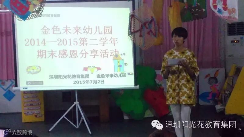 一颗感恩的心,就像一颗和平的种子,它是一种责任、自立、自尊和追求一种阳光人生的精神境界!7月2日,金色未来举行了期末教师感恩分享活动,感谢、感动和收获是我们的主题,老师们非常感动,留下了幸福的泪水,珍惜才会拥有,感恩才会天长地久,让我们大家都来感恩身边的每个人,通过本次的总结会,金色未来人的心靠的更近,凝聚力更强了,大家都清楚了自己的人生价值,相信在以后的日子里,金色未来会越来越精彩。相信阳光花教育集团一定会成为中国幼教的领跑者!