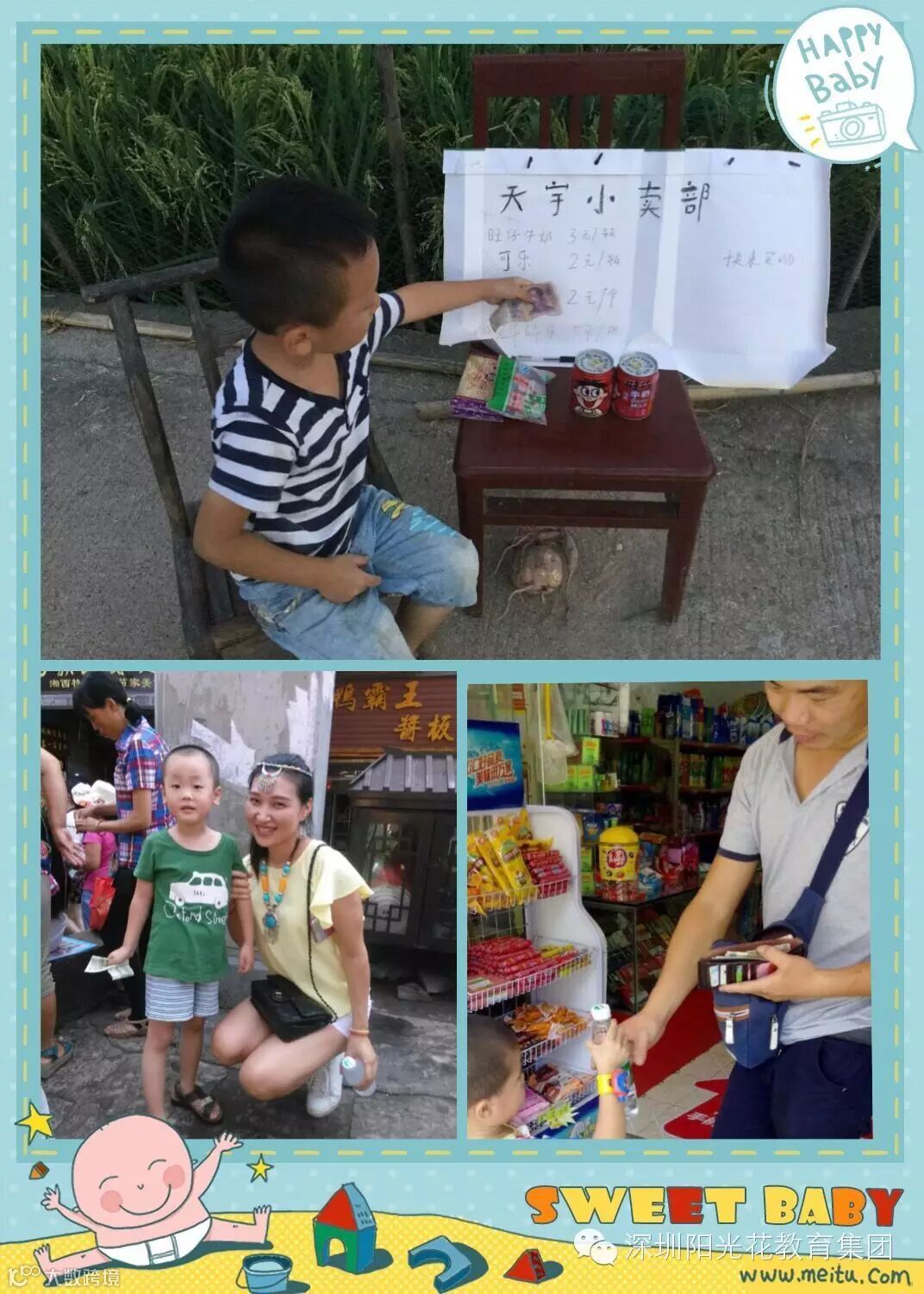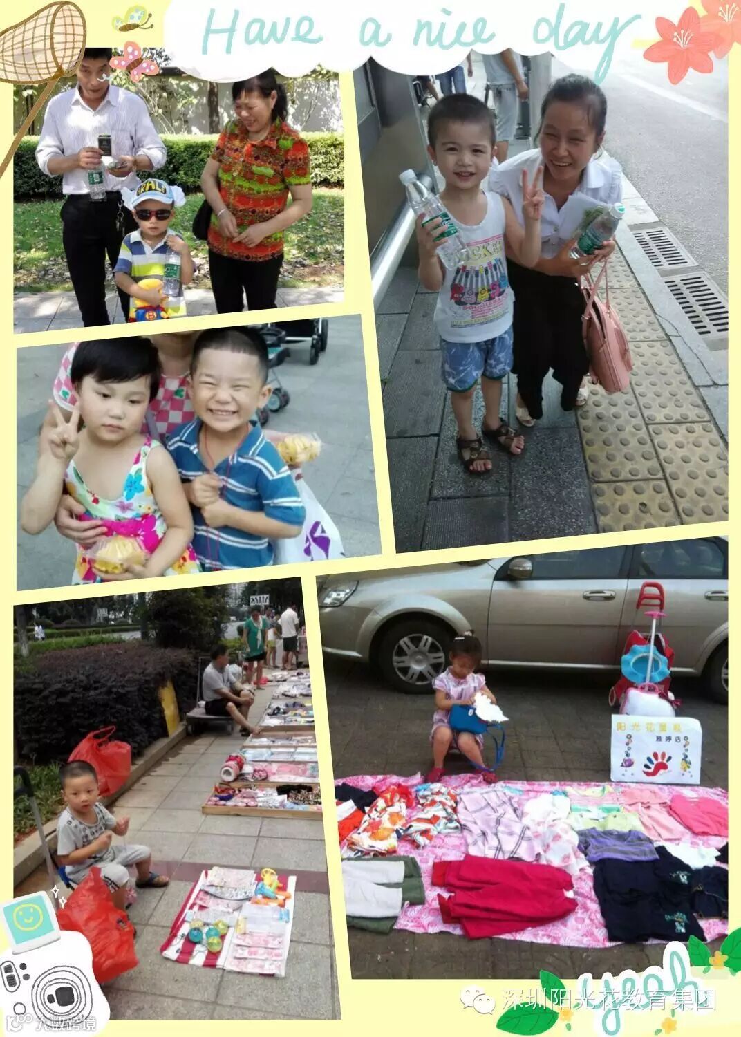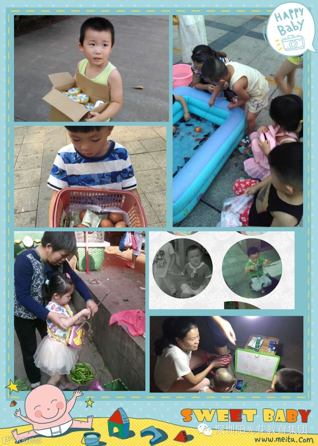 哇哦!原来啊,宝贝们利用暑期的时间,都当起了小小售货员,有卖水的、卖报纸的、卖鸡蛋的、卖花的、帮奶奶卖菜的、去洗车场帮叔叔阿姨洗车的......瞧我们的宝贝们多能干呀!