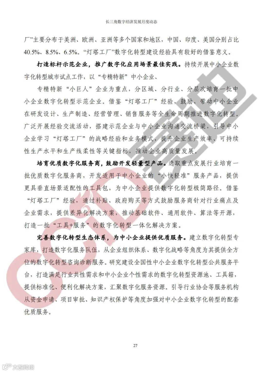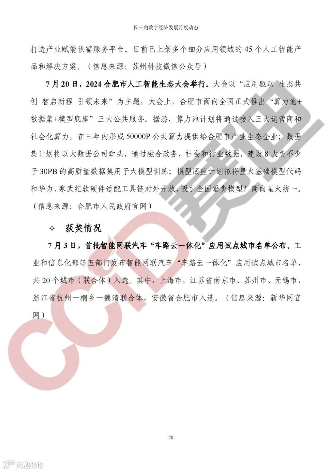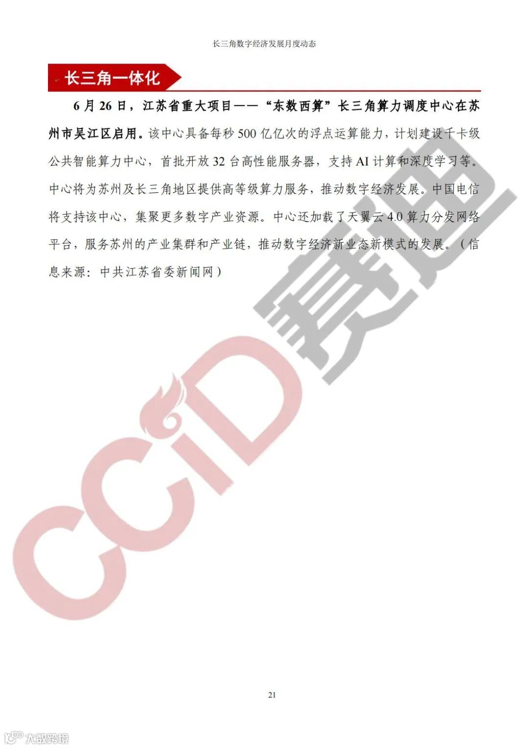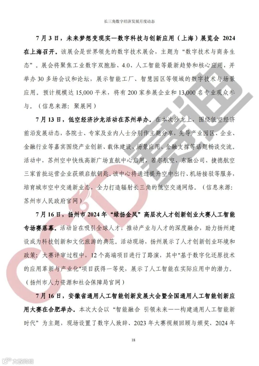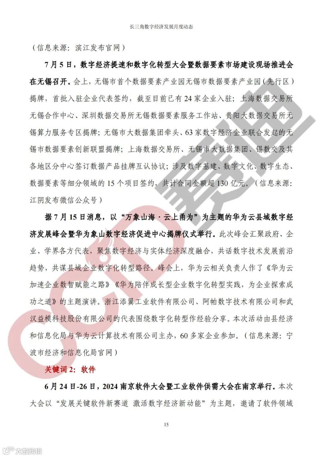 《长三角数字经济发展月度动态》2024年第7期来啦!本刊物由赛迪数字经济研究中心创办,重点聚焦《长江三角洲区域一体化发展规划纲要》中涵盖的27个中心区城市,以数字经济相关领域月度主要发展动态为主题,从数据洞察、政策汇集、行业观察、城市动态、长三角一体化、访谈讲话、赛迪观点等多个维度展现长三角数字经济的区域发展态势,进而为地方关切提供参考依据,助力地方经济社会发展。