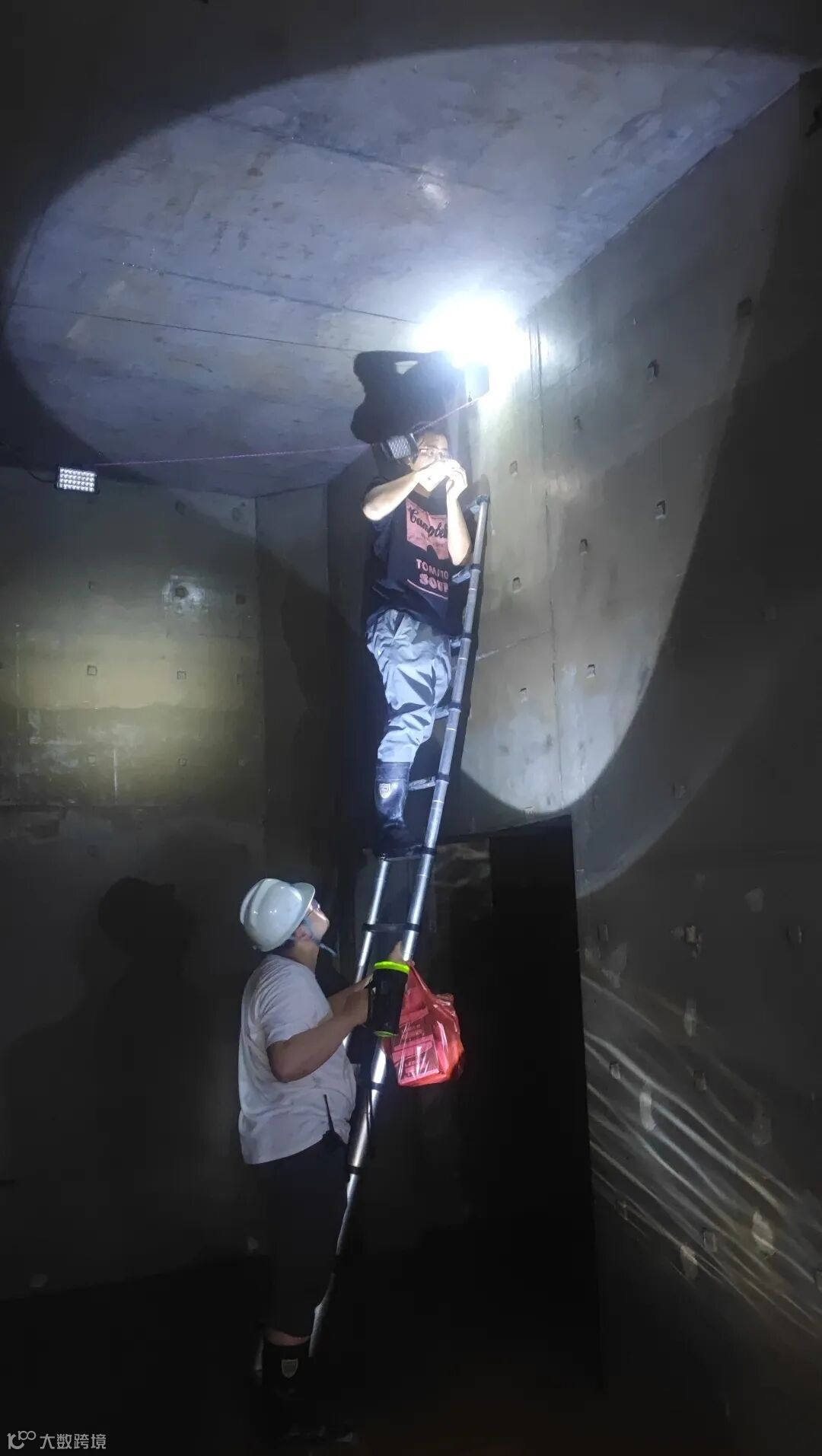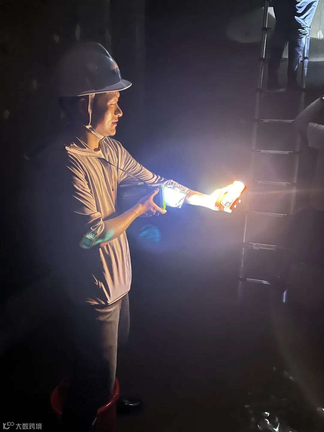 清洗开始前由开源水务集团副总周洋对本次水池清洗计划与方案,有限空间作业突发性事件应急救援预案、安全技术交底、作业票及安全应急物资进行检查,由安全员刘登冉对大家进行安全培训,认真掌握地下空间作业流程和动作要领,进行了安全设施、防护急救装备使用预演,然后按照“先通风、再检测、后作业”的操作规范,经检查评估达到安全标准后,作业人员依次佩戴安全带、安全绳等防护装备,在监护人辅助下缓慢抓梯进入4米多深的池中作业。