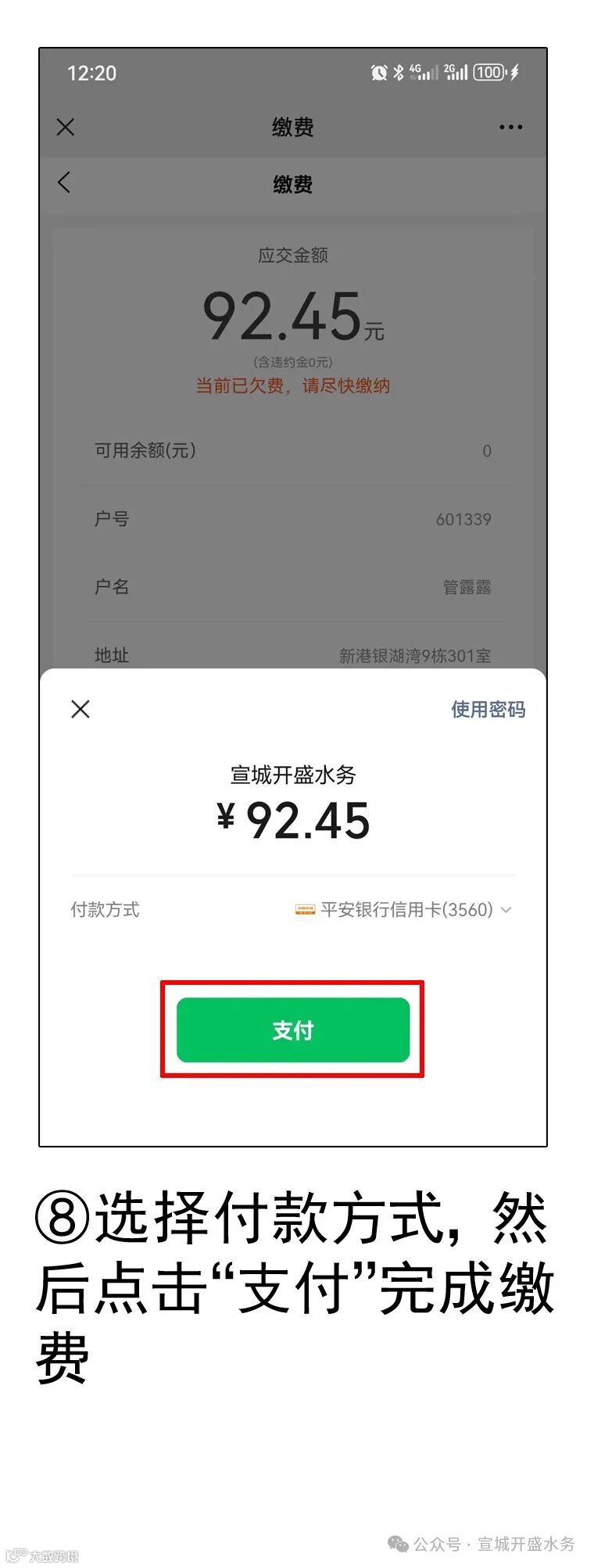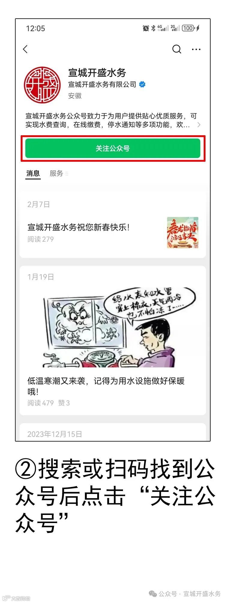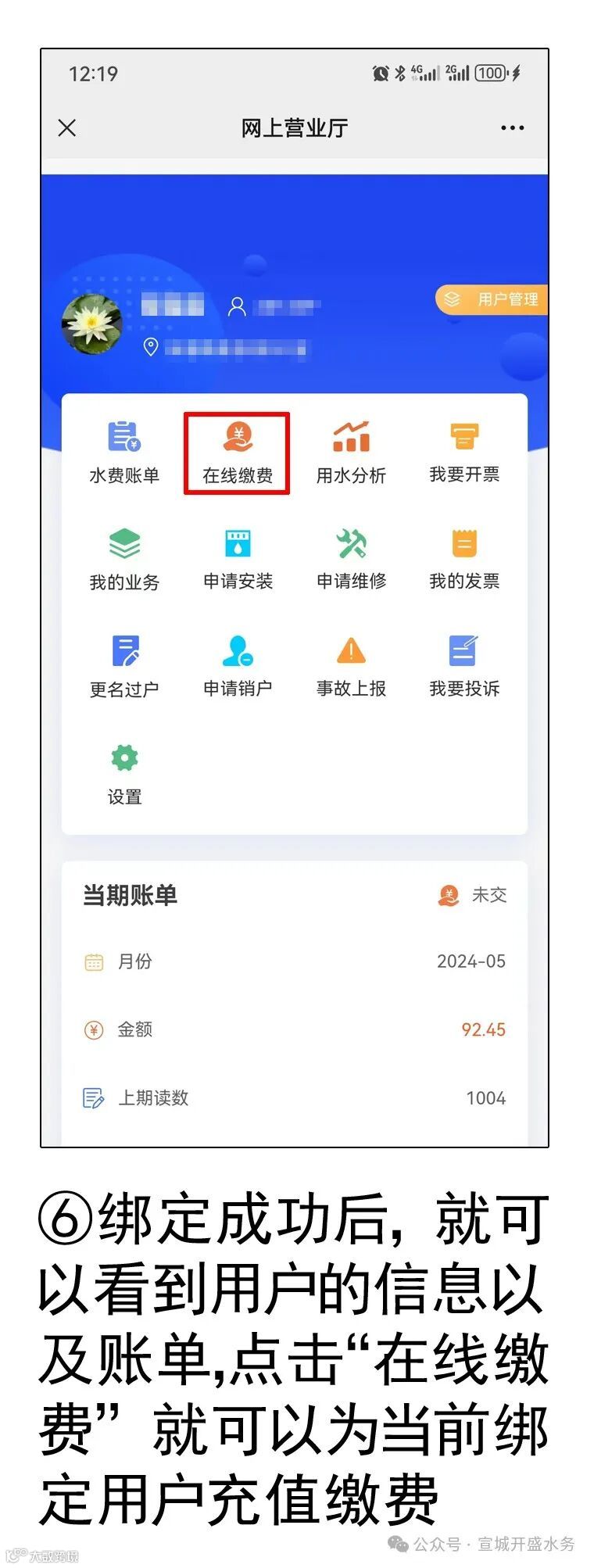 请关注宣城开盛水务的新老客户根据以下流程绑定营业厅查询和缴纳水费。