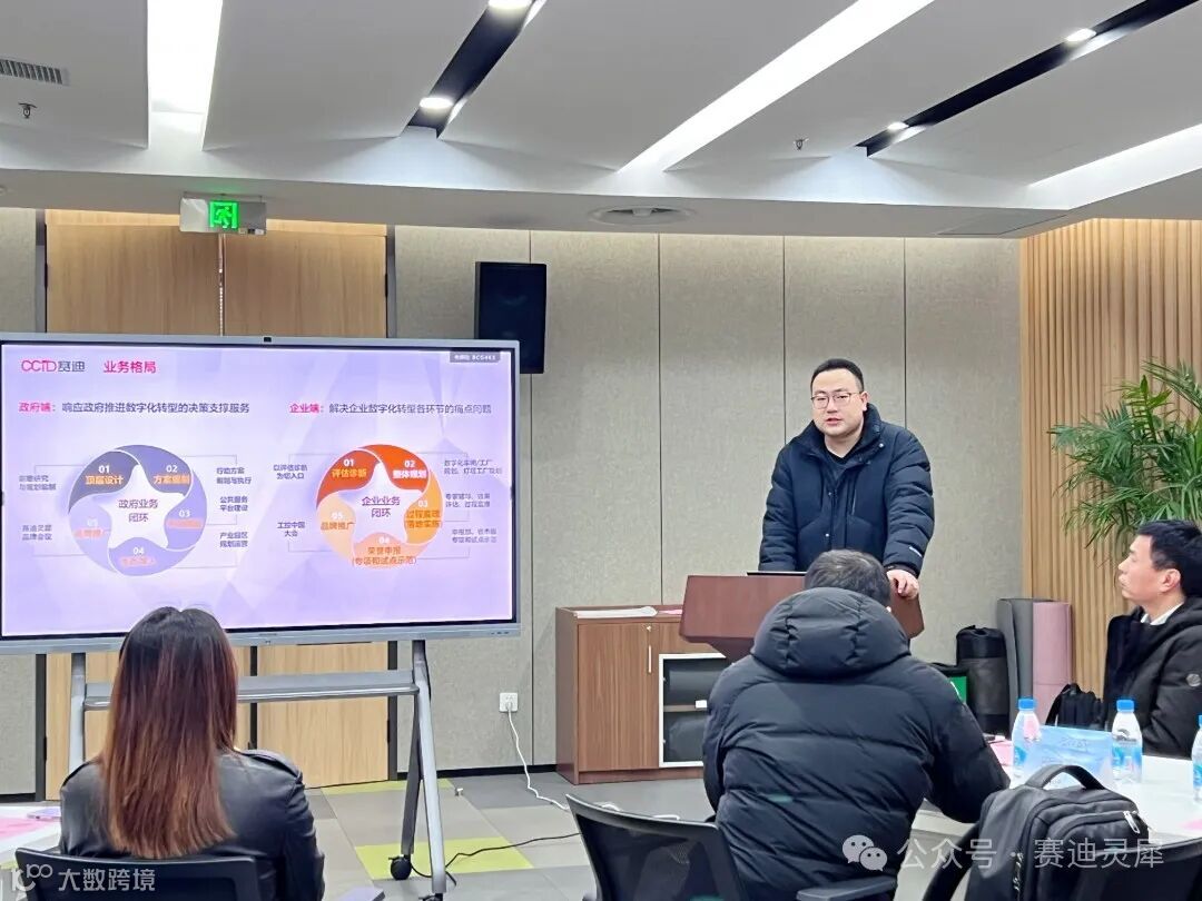 会议开始,苏州赛迪数字化能力发展中心孙健介绍了赛迪的历史沿革和业务板块在吴中的院地合作情况。苏州赛迪企业赋能团队致力于通过“业务+申报”双线赋能方式,进行分级对标和精准匹配,帮助企业通过对照标杆找到差距,并进行整体规划以实现业务提升,推动企业实现高质量发展。