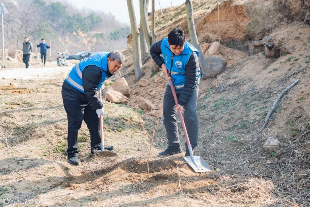 铁锹挥起又落下,泥土翻动又夯实。有人扶着笔直的树苗,有人培上新土,有人提着水桶来回奔走。阳光下,每个人的脸上都带着笑意,动作认真而专注 —— 那是对一棵小树苗茁壮成长的期许,也是对绿色家园最朴素的守护。