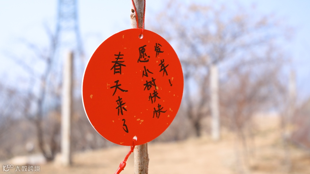 “春天来了,愿小树快快发芽!”“明年春天,我来看看你”。植树间隙,大家拿出心愿卡,写下简简单单的话语,系在枝头。风一吹,卡片轻轻晃动,仿佛树苗在轻轻点头应答。