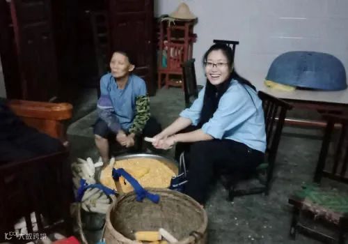 ▲黄文秀到村民家走访,主动帮村民掰玉米(资料照片)。