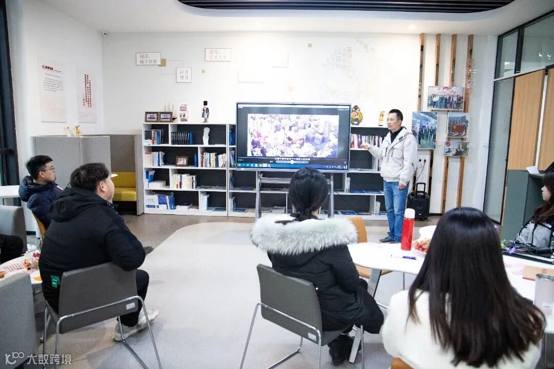 陈昊老师带领大家参观展厅,为大家讲解公司各事业部业务板块内容。