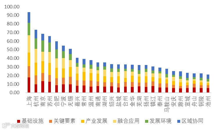 图4.3.1长三角城市数字经济发展关键要素指数梯队分布