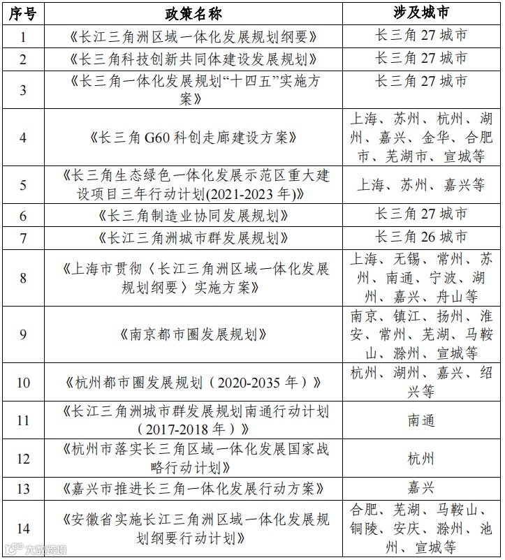 (3)区域联动:长三角各省市主动推进一体化进程,近年来相关大会陆续召开