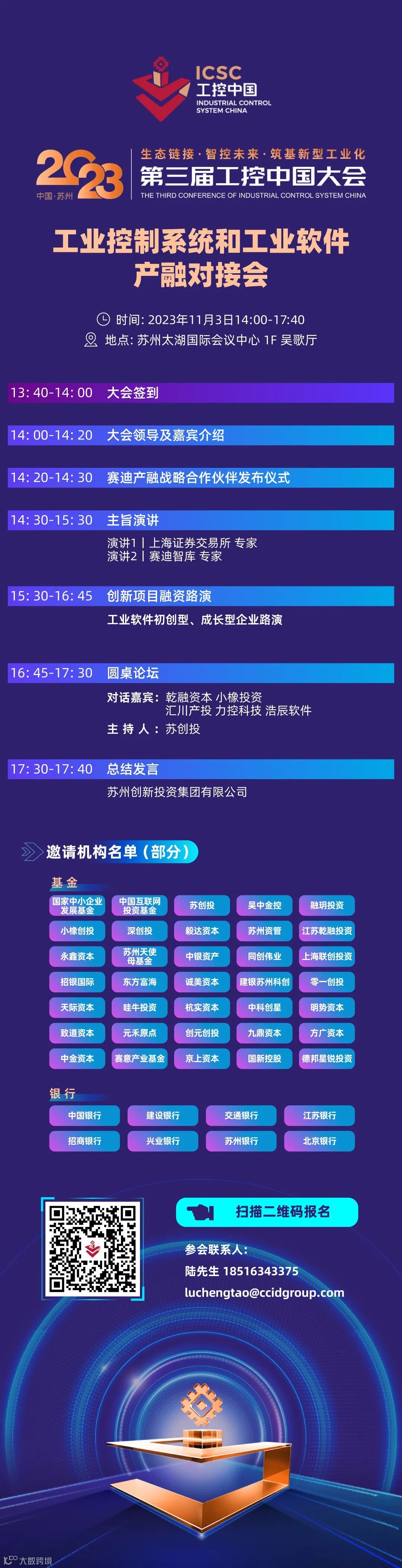 工业控制系统和工业软件产融对接会旨在搭建“政、产、融”对接平台,以“产融结合助力工控发展”为主题,汇聚专注于工业控制系统和工业软件及数字化制造领域的政府领导、产业投资方、一线金融机构投资人及优秀的企业家,共同探讨工控及工业软件发展的创新思路、展望“科技+金融”的前进方向,协同推进工控及工业软件产业发展。