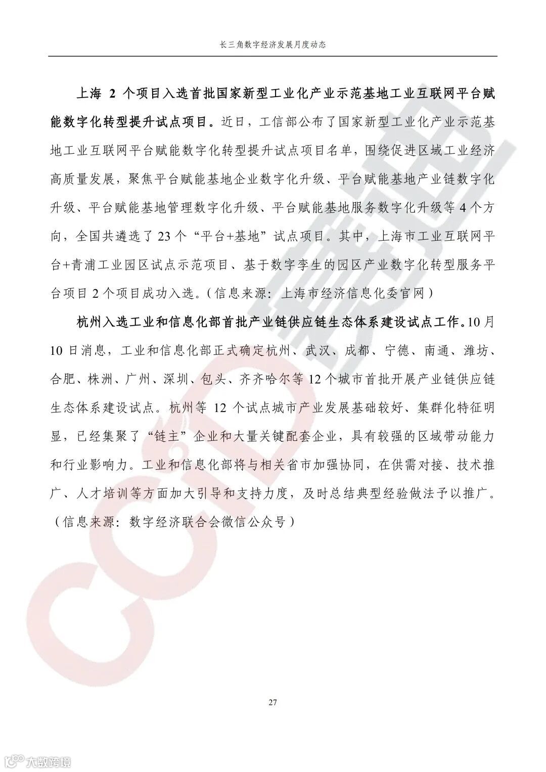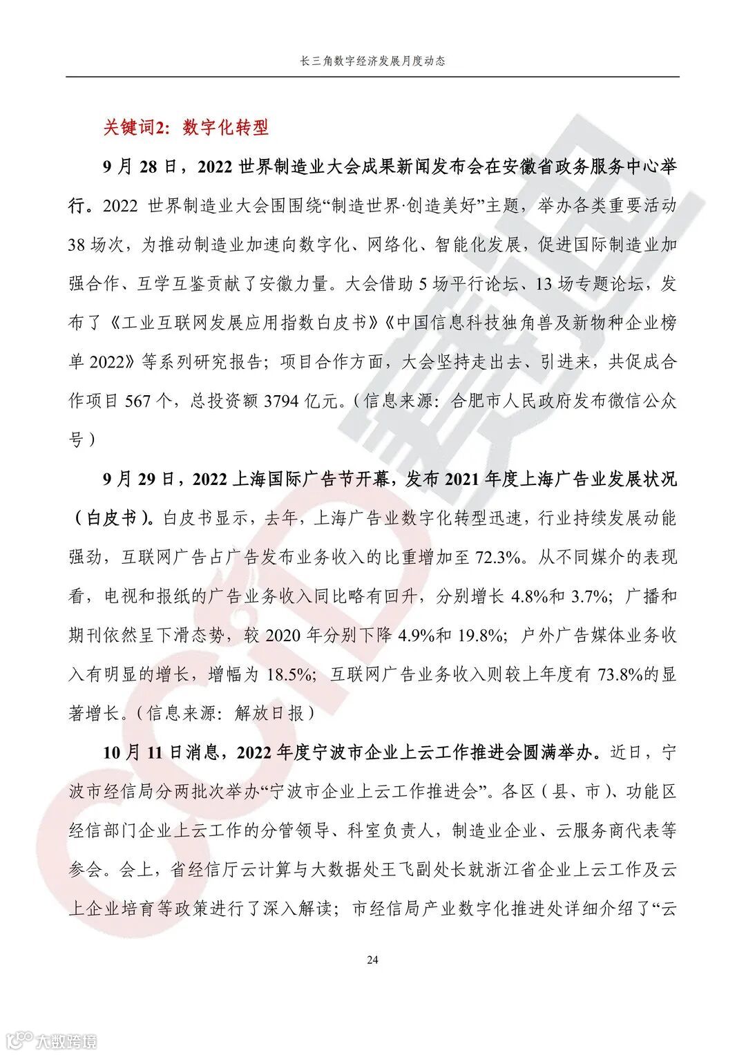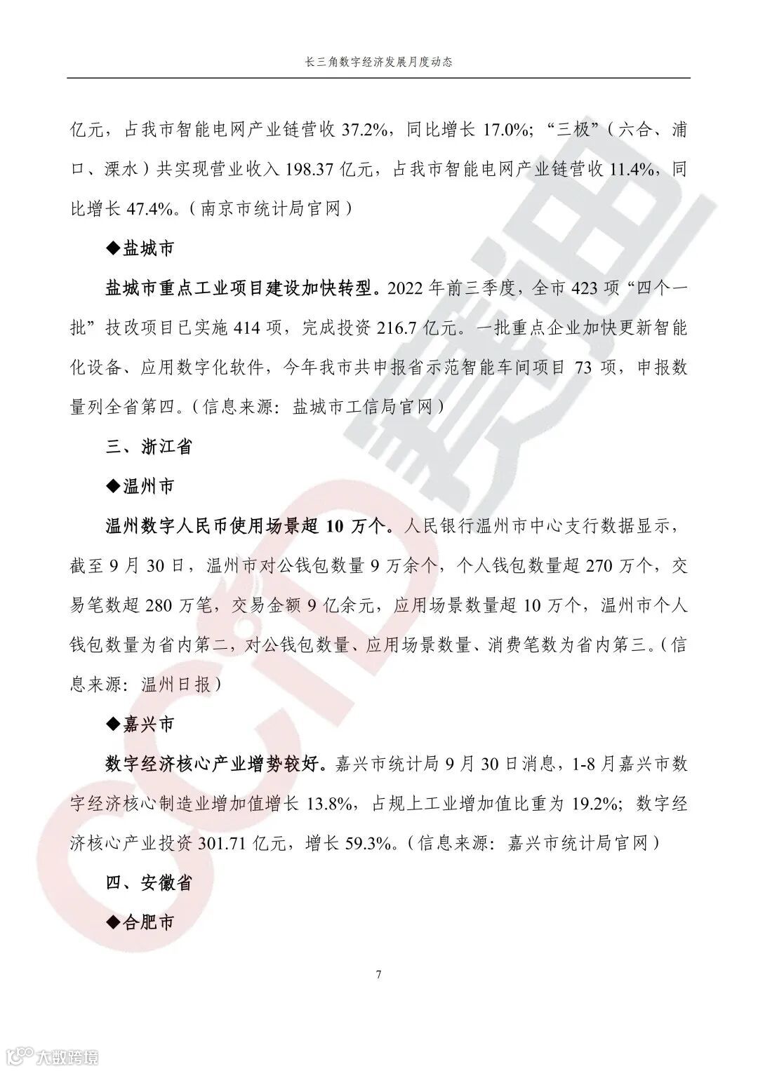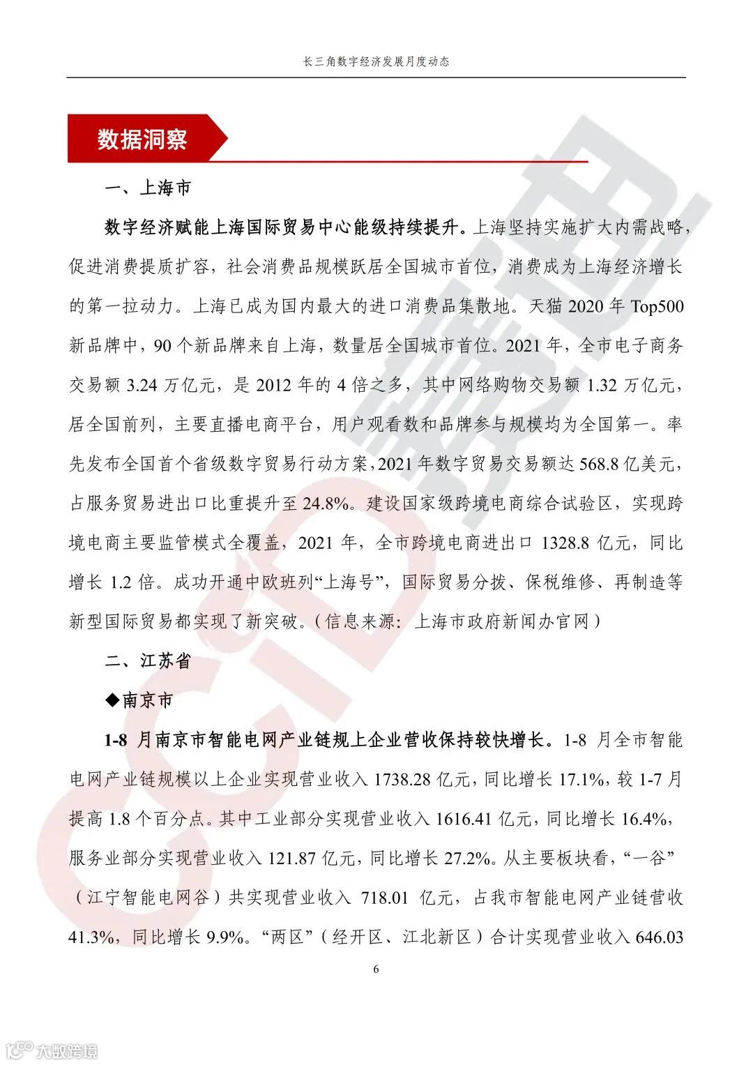 《长三角数字经济发展月度动态》2022年第10期来啦!本刊物由赛迪数字经济研究中心创办,重点聚焦《长江三角洲区域一体化发展规划纲要》中涵盖的27个中心区城市,以数字经济相关领域月度主要发展动态为主题,从数据洞察、政策汇集、行业观察、城市动态、长三角一体化、访谈讲话、赛迪观点等多个维度展现长三角数字经济的区域发展态势,进而为地方关切提供参考依据,助力地方经济社会发展。