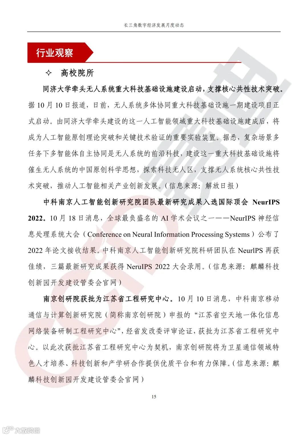 高校院所,同济大学牵头无人系统重大科技基础设施建设启动,支撑核心共性技术突破;中科南京人工智能创新研究院团队最新研究成果入选国际顶会NeurIPS 2022;南京创研院获批为江苏省工程研究中心。