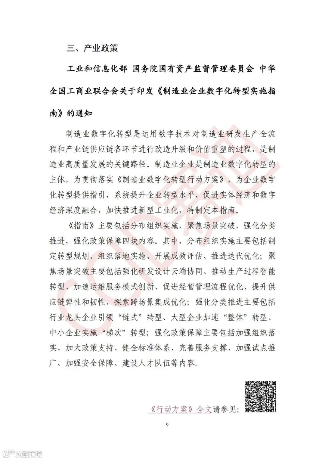 为贯彻落实《制造业数字化转型行动方案》,为企业数字化转型提供指引,系统提升企业转型水平,促进实体经济和数字经济深度融合,加快推进新型工业化,特制定本指南。《指南》主要包括分布组织实施,聚焦场景突破,强化分类推进,强化政策保障四块内容。
