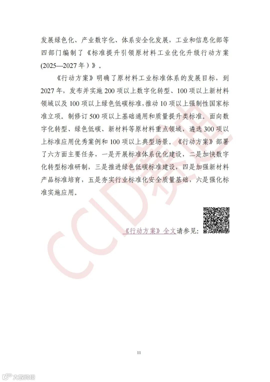 四部门印发《标准提升引领原材料工业优化升级行动方案(2025—2027年)》