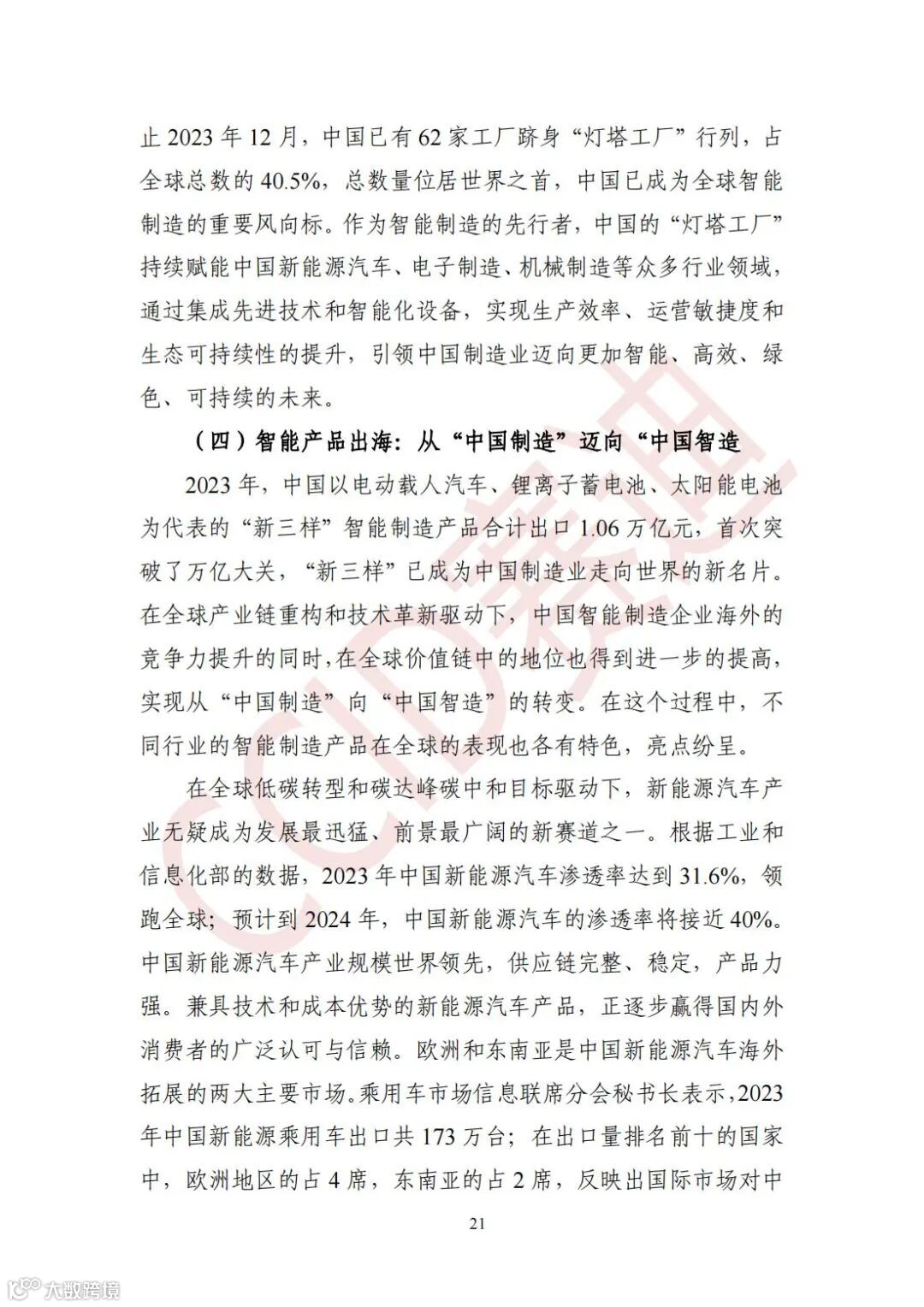 智能产品出海:从“中国制造”迈向“中国智造。2023年,中国以电动载人汽车、锂离子蓄电池、太阳能电池为代表的“新三样”智能制造产品合计出口1.06万亿元,首次突破了万亿大关。根据工业和信息化部的数据,2023年中国新能源汽车渗透率达到31.6%,领跑全球;预计到2024年,中国新能源汽车的渗透率将接近40%。