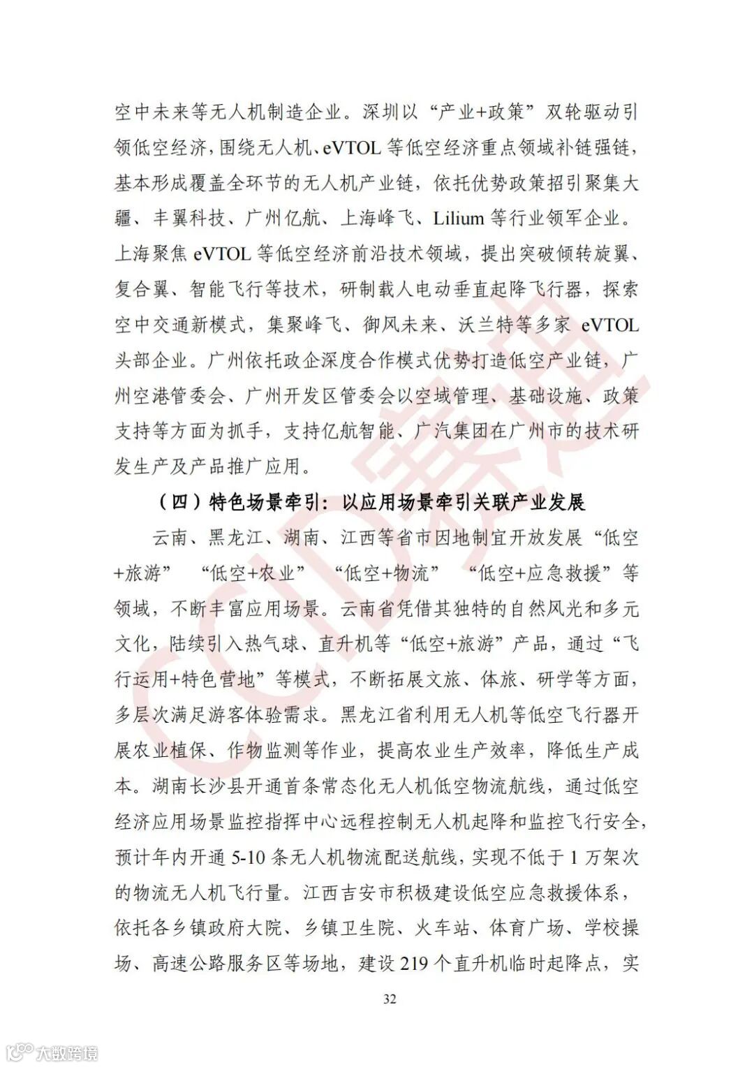 依托自身优势选择产业链细分赛道。 因地制宜选择对相关资源高度依赖的低空经济产业细分赛道。确定低空经济潜在应用场景,以本地潜力大、市场前景好的应用场景牵引产业发展。根据地方区位和特色优势进行差异化的布局,共同构建区域产业集群。