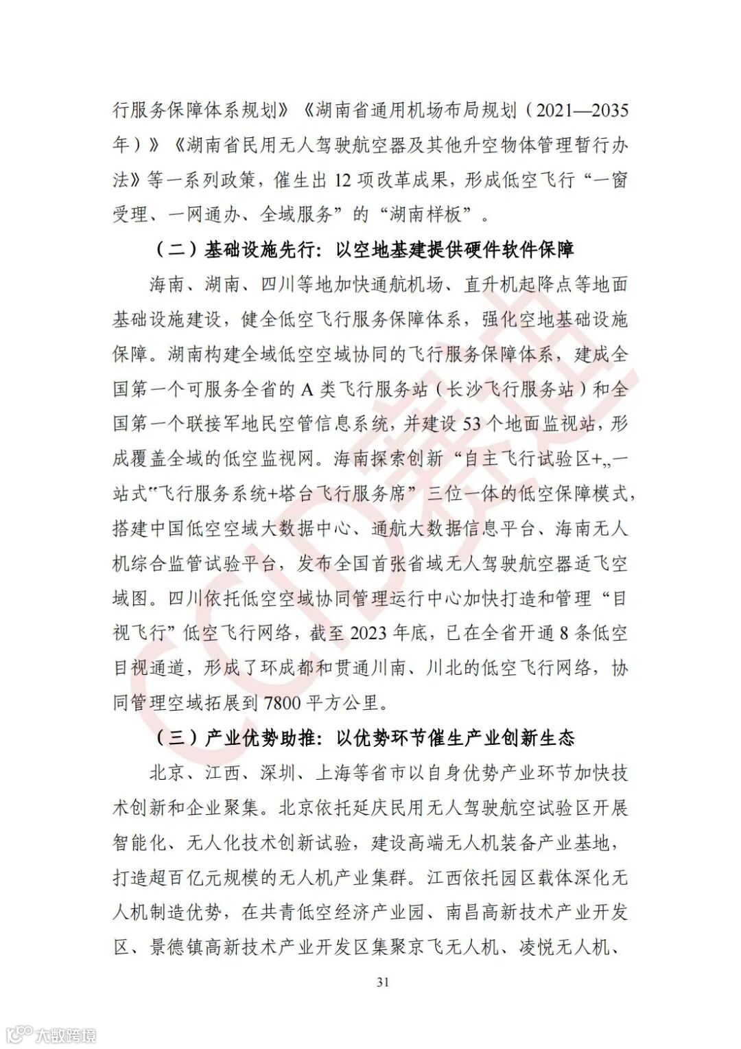 产业优势助推:以优势环节催生产业创新生态。北京、江西、深圳、上海等省市以自身优势产业环节加快技术创新和企业聚集。比如,北京依托延庆民用无人驾驶航空试验区开展智能化、无人化技术创新试验,建设高端无人机装备产业基地,打造超百亿元规模的无人机产业集群。