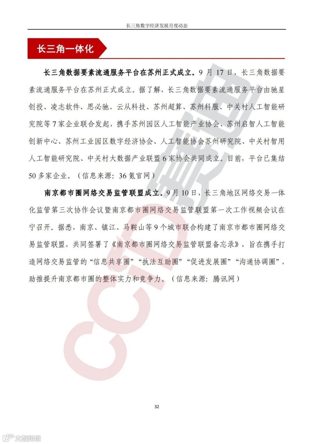 平台联盟齐发力,共建长三角一体化良好生态。驰星创投、凌志软件、思必驰、云从科技等7家企业联合发起,携手苏州启智人工智能创新中心、苏州工业园区数字经济协会、人工智能协会苏州研究院等6家协会共同成立长三角数据要素流通服务平台,将持续释放区域数据要素价值,促进区域数字经济高质量发展;南京、镇江、马鞍山等9个城市联合构建了南京市都市圈网络交易监管联盟,旨在携手打造网络交易监管的“信息共享圈”“执法互助圈”“促进发展圈”“沟通协调圈”,助推提升南京都市圈的整体实力和竞争力。