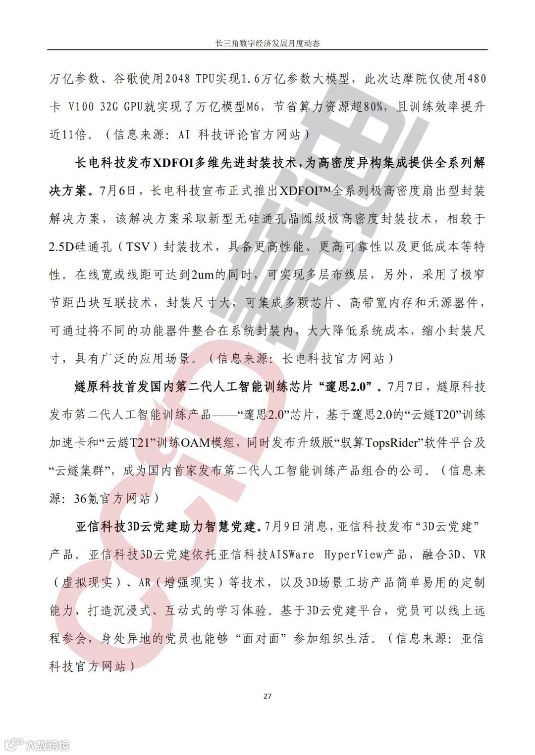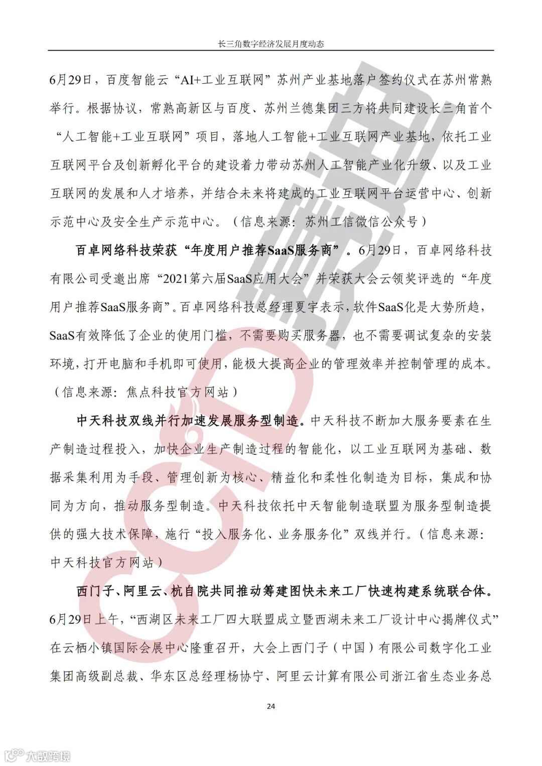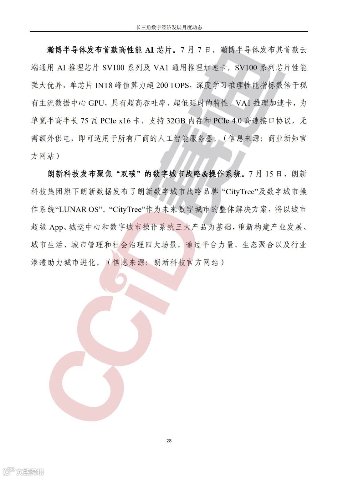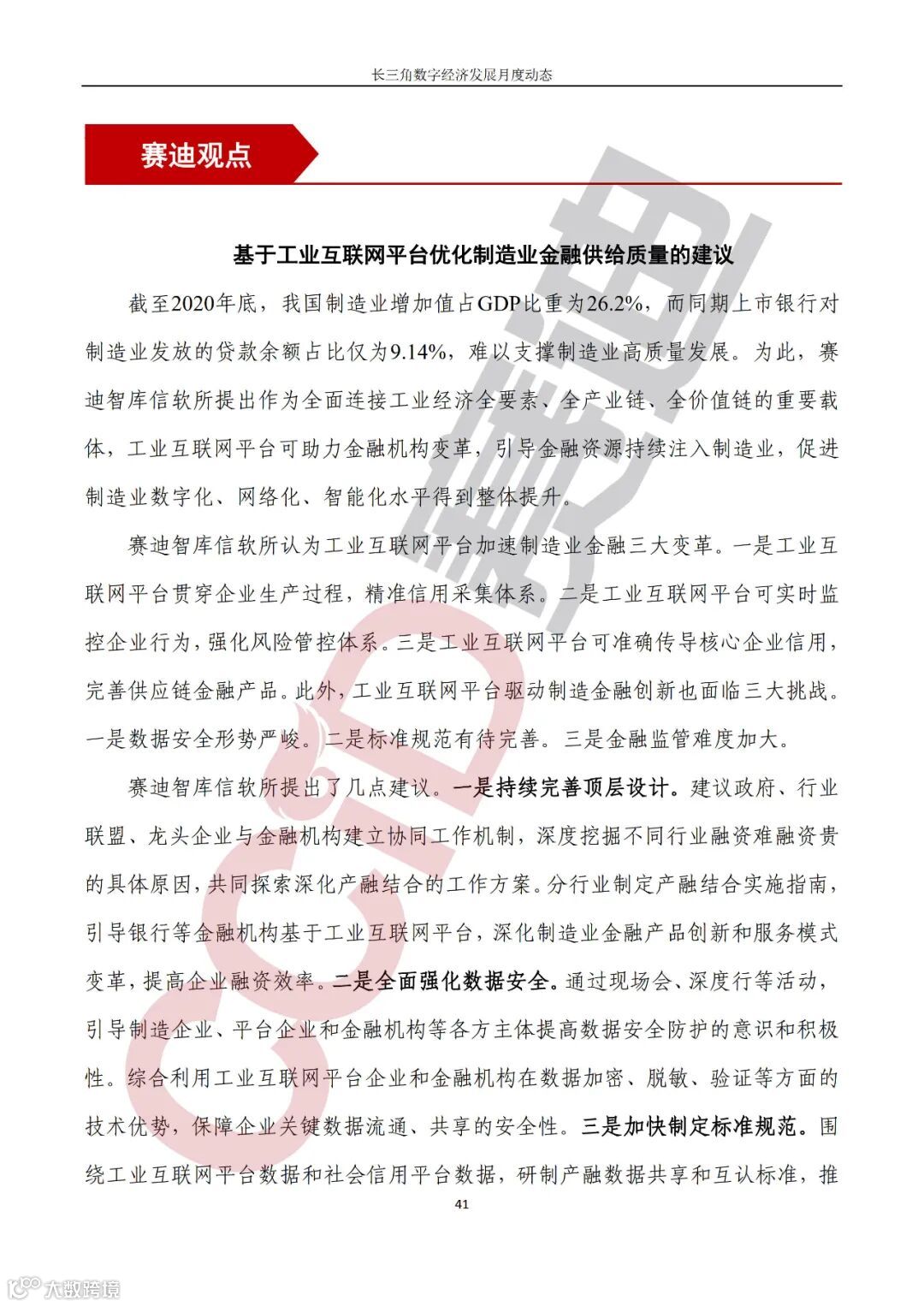 《长三角数字经济发展月度动态》2021年第7期来啦!本刊物由赛迪数字经济研究中心创办,重点聚焦《长江三角洲区域一体化发展规划纲要》中涵盖的27个中心区城市,以数字经济相关领域月度主要发展动态为主题,从数据洞察、政策汇集、行业观察、城市动态、长三角一体化、访谈讲话、赛迪观点等多个维度展现长三角数字经济的区域发展态势,进而为地方关切提供参考依据,助力地方经济社会发展。