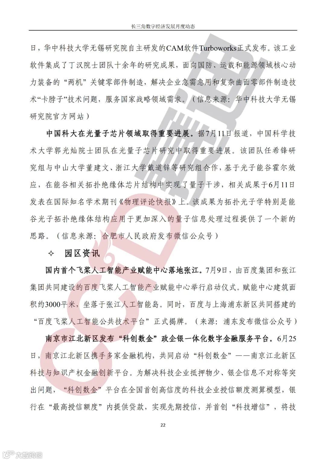 高校院所,上海交通大学与华为联合发布“数据密集型超算示范中心”;上海交通大学海南区块链研究院签约仪式举行;苏州南大共建太湖科学城环南大科创圈;华中科技大学无锡研究院自主研发的CAM软件Turboworks正式发布;中国科大在光量子芯片领域取得重要进展。
