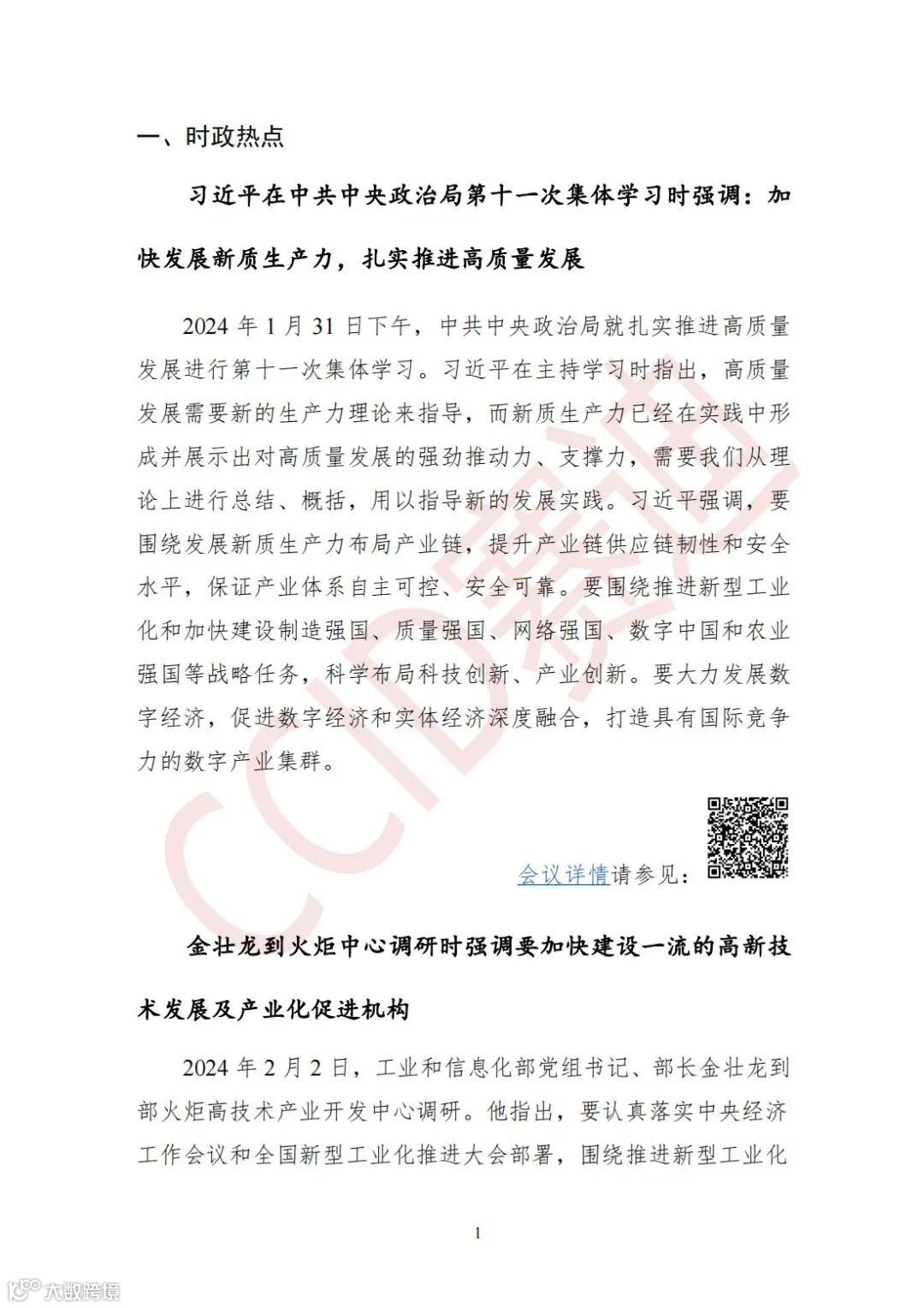 1月31日下午,中共中央政治局就扎实推进高质量发展进行第十一次集体学习。习近平在主持学习时指出,高质量发展需要新的生产力理论来指导,而新质生产力已经在实践中形成并展示出对高质量发展的强劲推动力、支撑力,需要我们从理论上进行总结、概括,用以指导新的发展实践。习近平强调,要围绕发展新质生产力布局产业链,提升产业链供应链韧性和安全水平,保证产业体系自主可控、安全可靠。要围绕推进新型工业化和加快建设制造强国、质量强国、网络强国、数字中国和农业强国等战略任务,科学布局科技创新、产业创新。要大力发展数字经济,促进数字经济和实体经济深度融合,打造具有国际竞争力的数字产业集群。