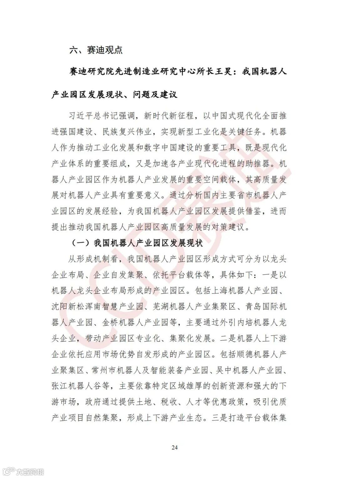 习近平总书记强调,新时代新征程,以中国式现代化全面推进强国建设、民族复兴伟业,实现新型工业化是关键任务。机器人产业园区作为机器人产业发展的重要空间载体,其高质量发展对机器人产业具有重要意义。