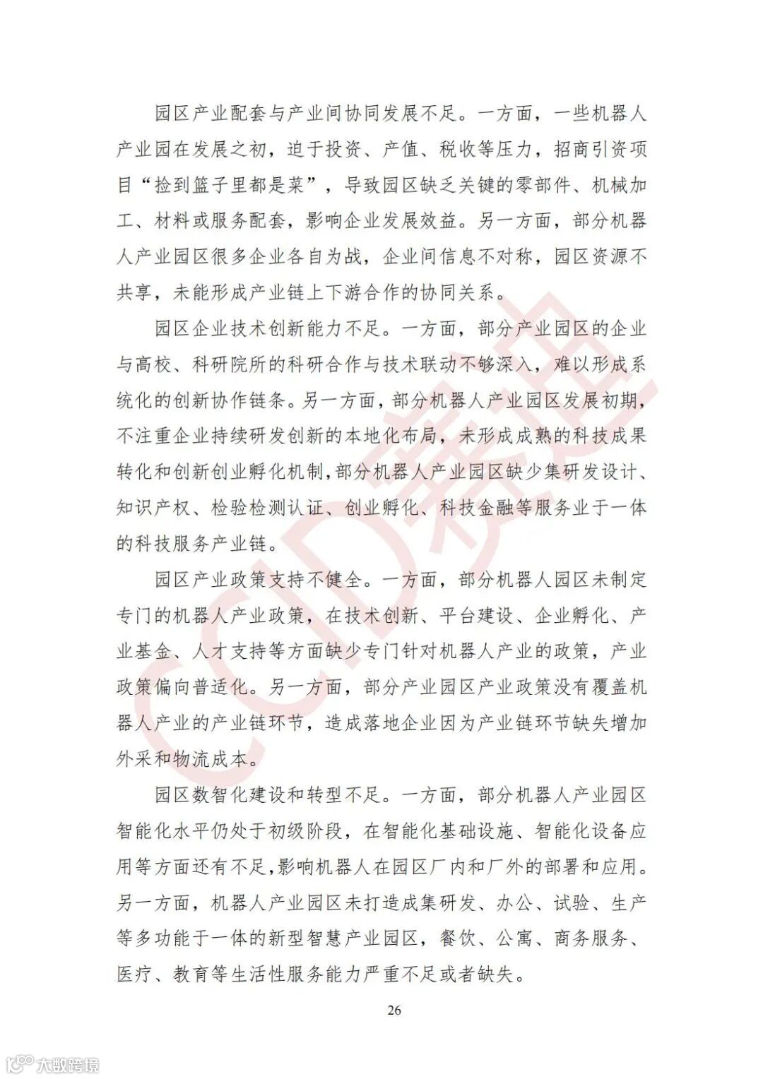 园区数智化建设和转型不足。一方面,部分机器人产业园区智能化水平仍处于初级阶段,在智能化基础设施、智能化设备应用等方面还有不足,影响机器人在园区厂内和厂外的部署和应用。另一方面,机器人产业园区未打造成集研发、办公、试验、生产等多功能于一体的新型智慧产业园区,餐饮、公寓、商务服务、医疗、教育等生活性服务能力严重不足或者缺失。